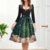 Женское модное повседневное платье приталенного кроя с круглым вырезом, рождественским принтом и длинными рукавами