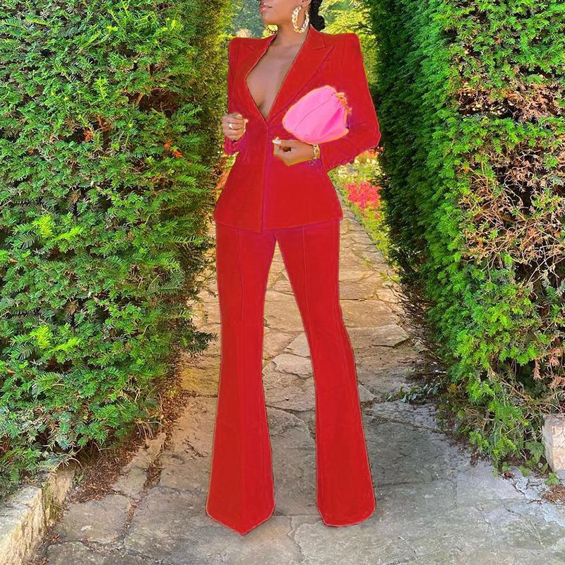 Осень 2022 Европейский и американский приталенный пиджак с расклешенными брюками для женщин
