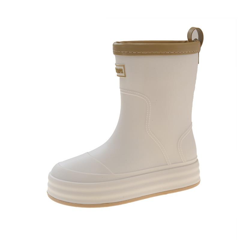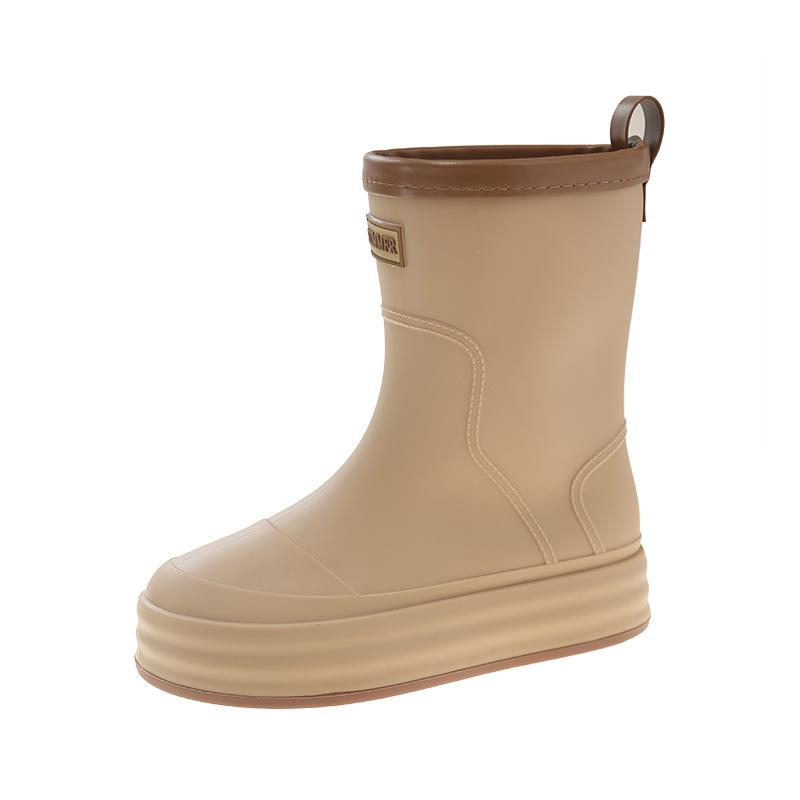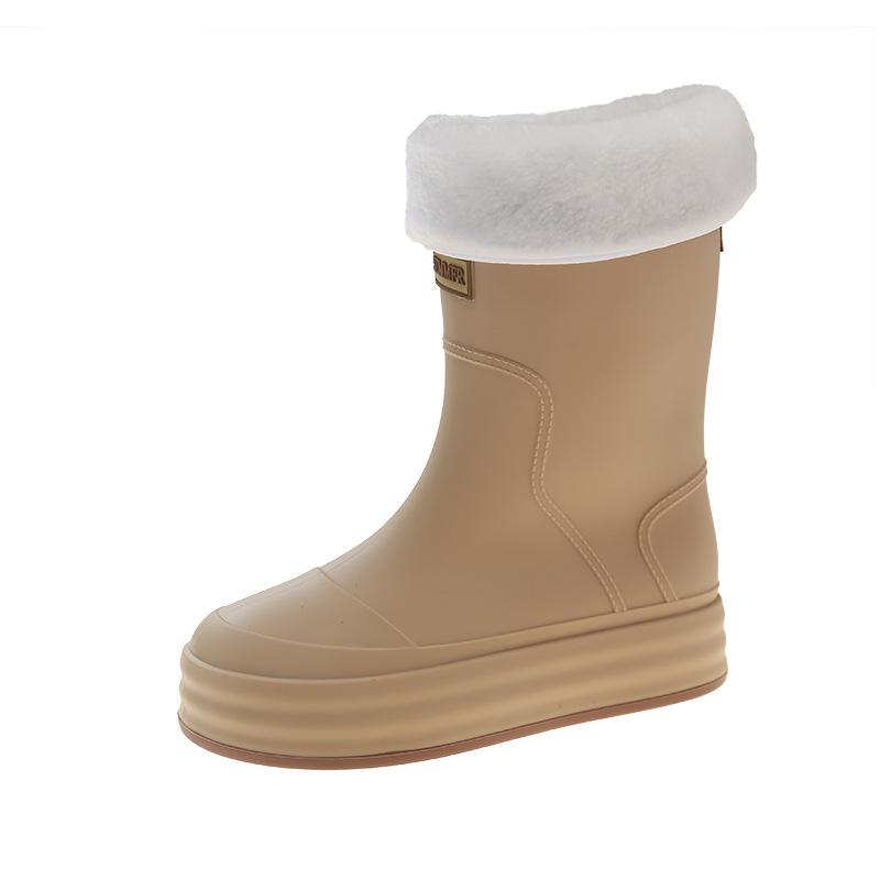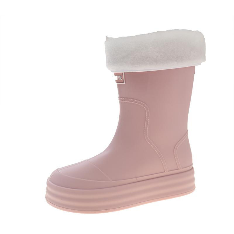 Женские резиновые сапоги средней высоты, нескользящие короткие резиновые сапоги, теплые флисовые водные ботинки, кухонная рабочая обувь, женские легкие платформенные дождевые сапоги