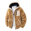 Мужская повседневная куртка-кардиган из овчины с капюшоном и воротником-стойкой, верхняя одежда для улицы