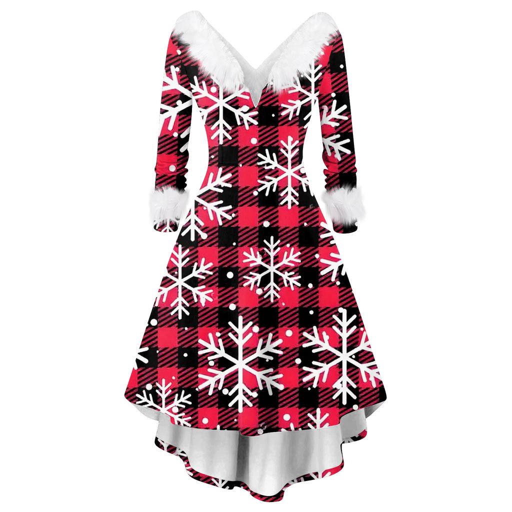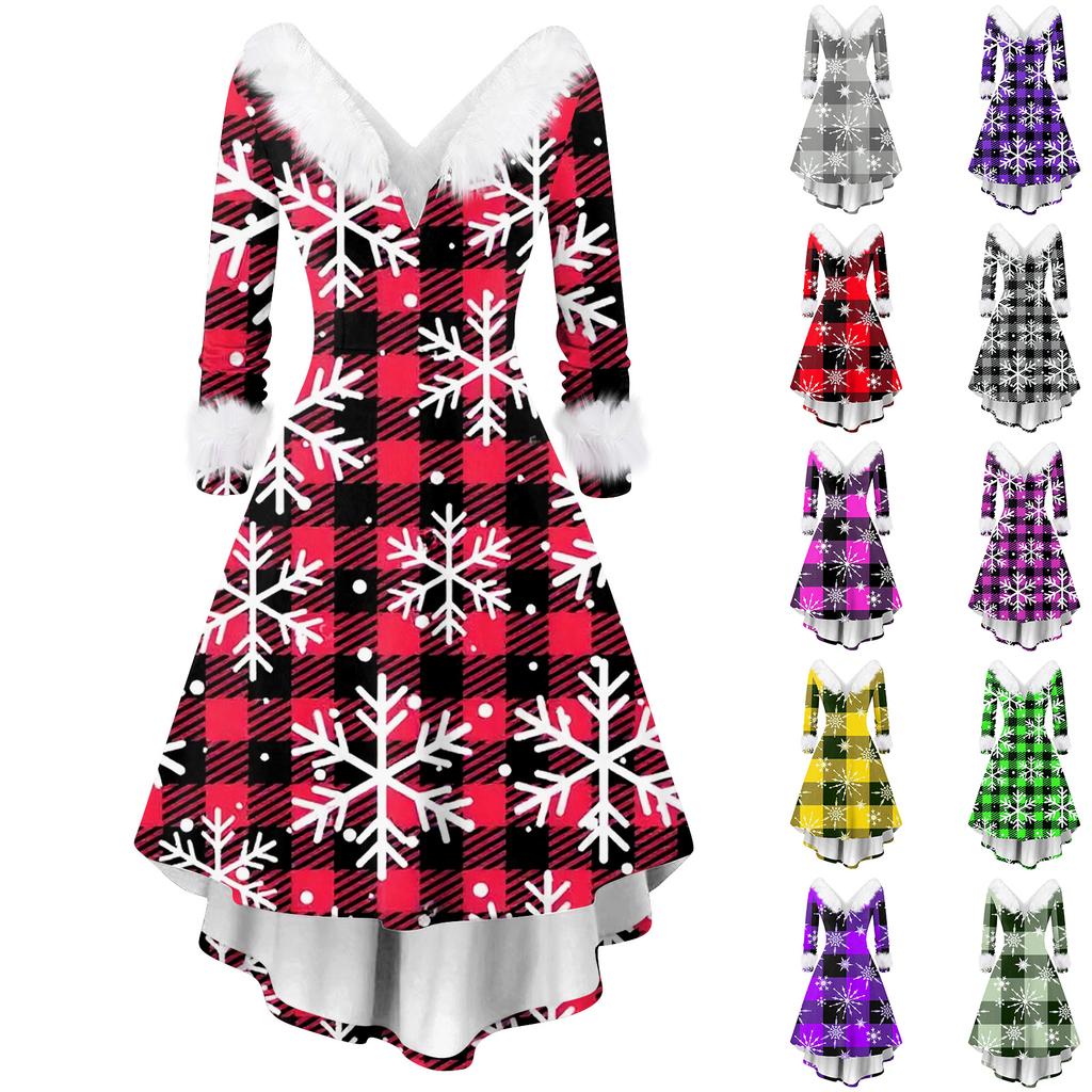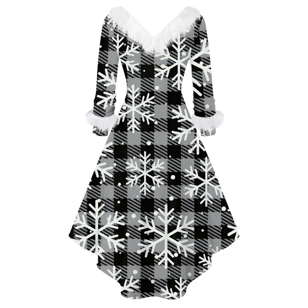 Женское модное повседневное платье с V-образным вырезом и рождественским принтом с длинным рукавом