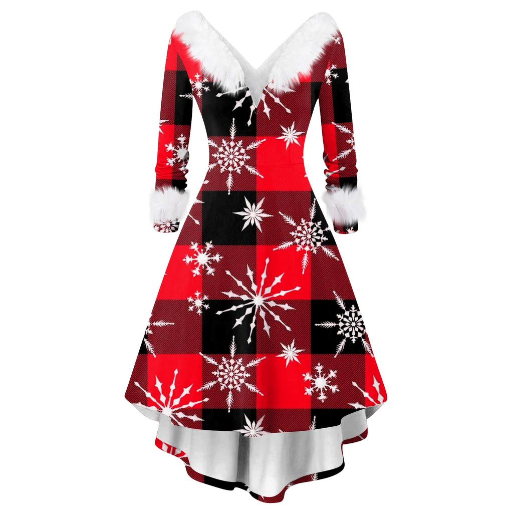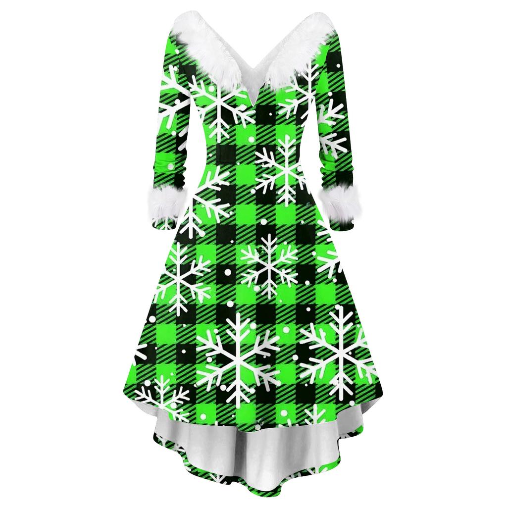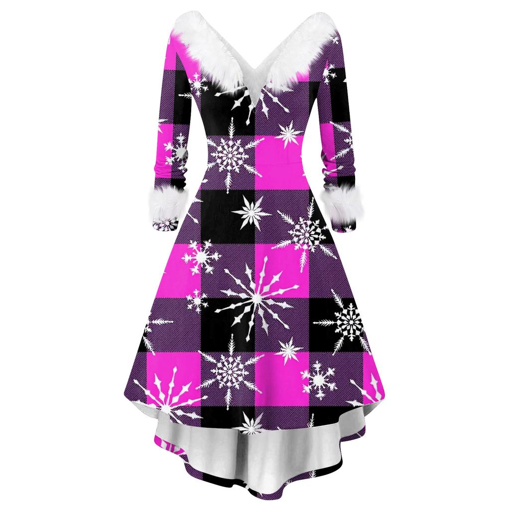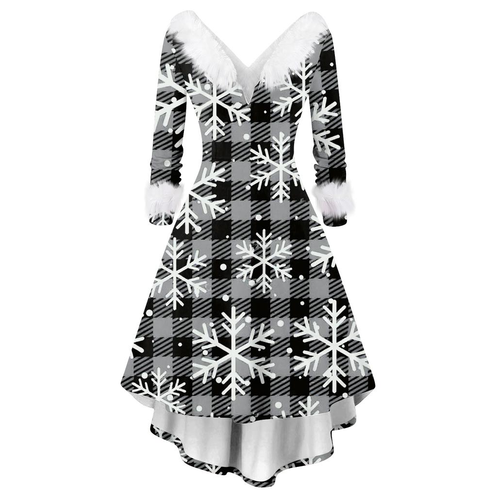 Женское модное повседневное платье с V-образным вырезом и рождественским принтом с длинным рукавом