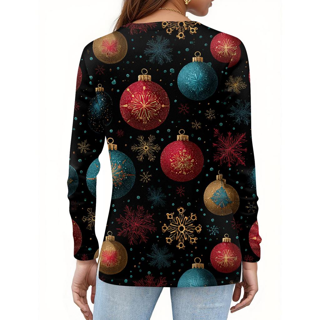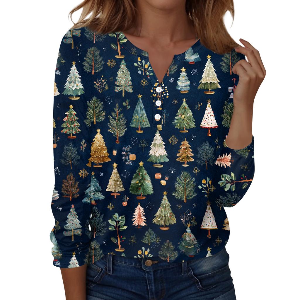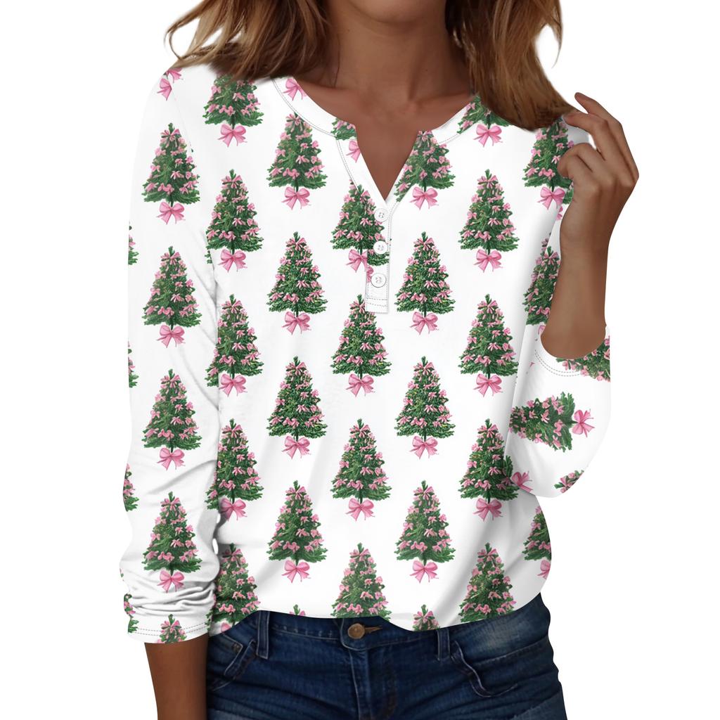 Женская мода Повседневная футболка с V-образным вырезом, длинными рукавами и декоративными пуговицами