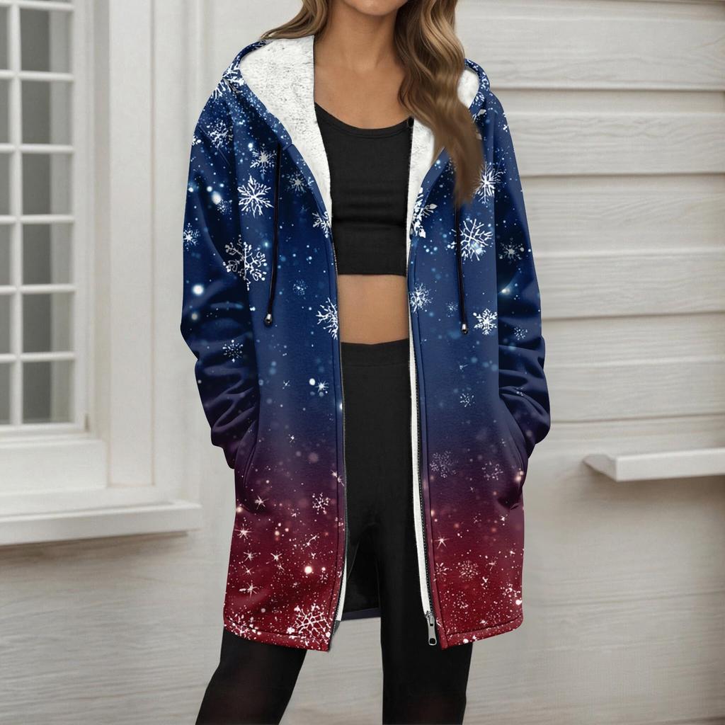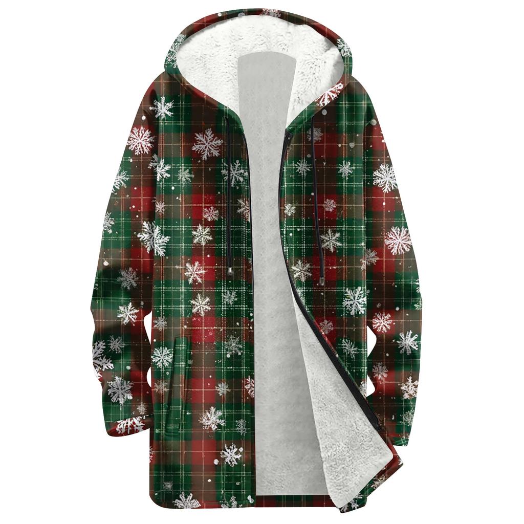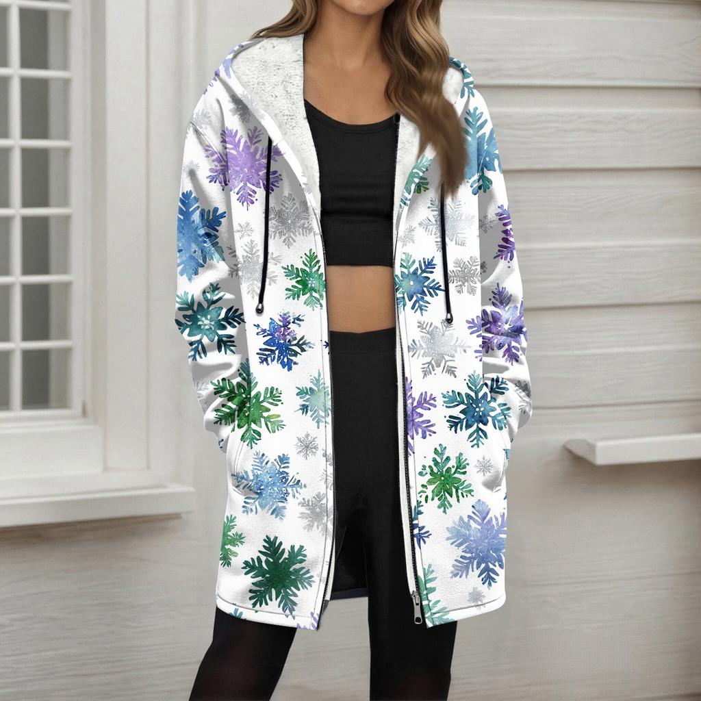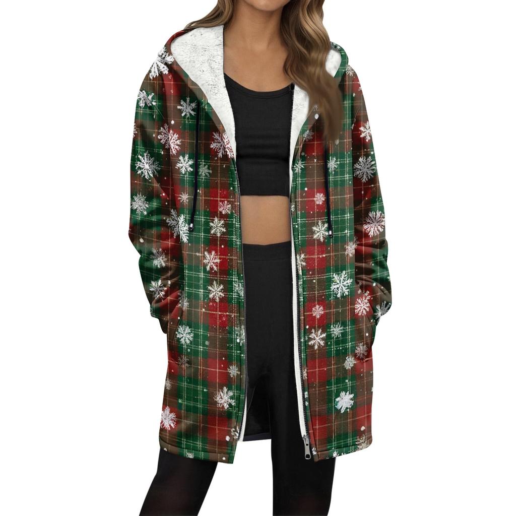 Женская модная флисовая куртка-худи на молнии свободного кроя с рождественским принтом