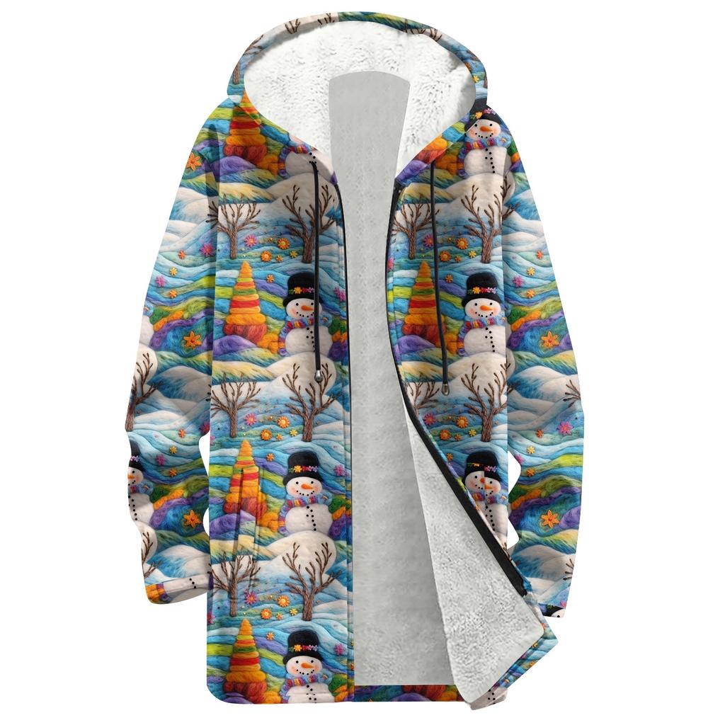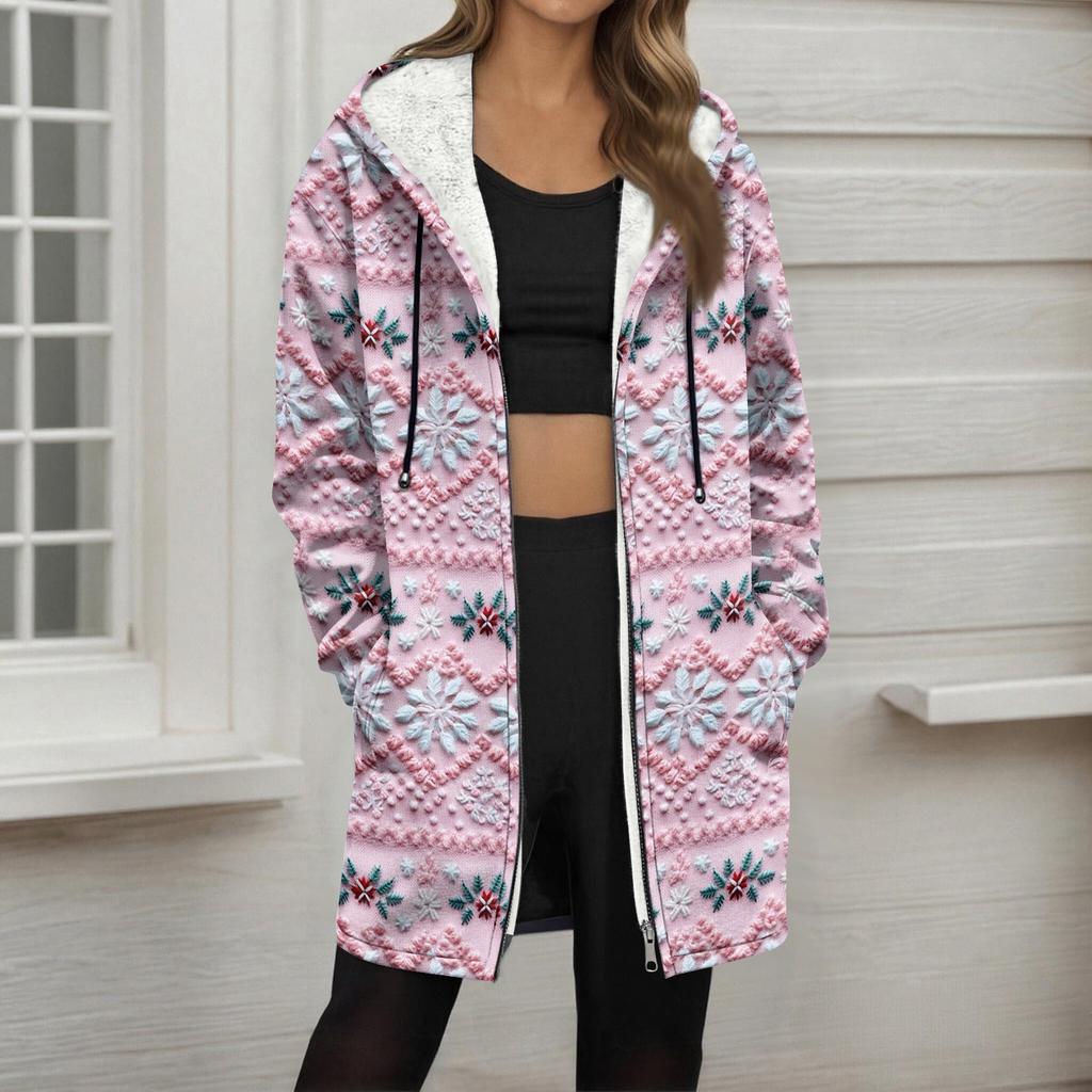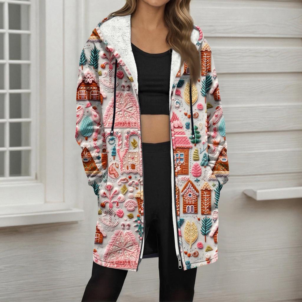 Женская модная флисовая куртка-худи на молнии свободного кроя с рождественским принтом