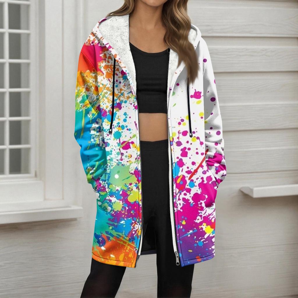 Женская модная флисовая куртка-худи свободного кроя на молнии с градиентным принтом