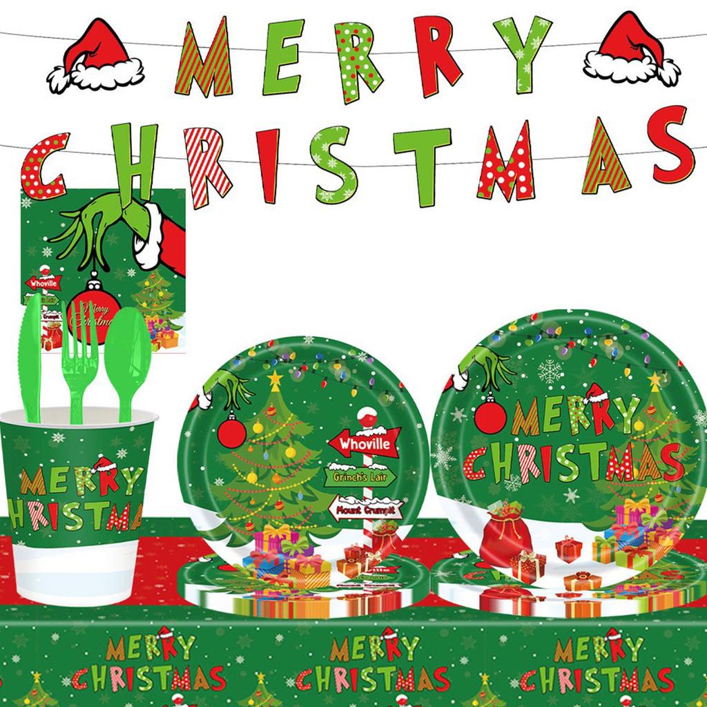 Одноразовая праздничная посуда с рождественской тематикой, украшение для стола, баннер для украшения тематической вечеринки ко дню рождения, флажки, флажок для торта, воздушный шар - Набор
