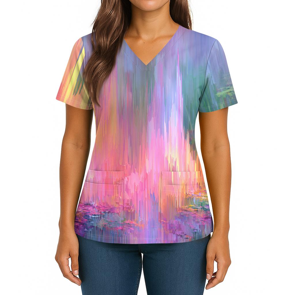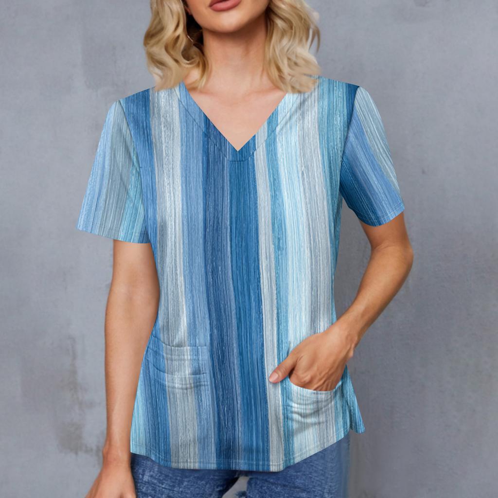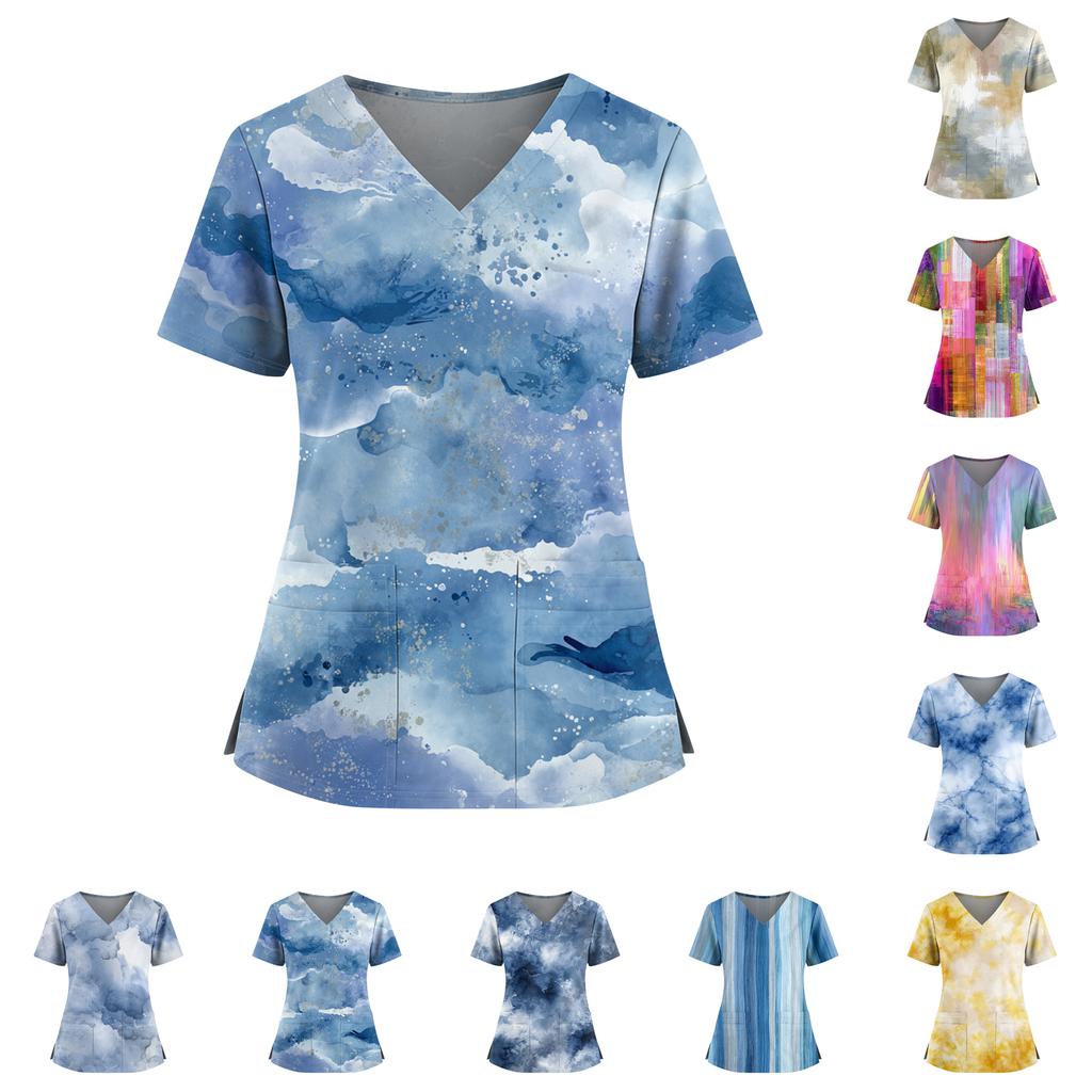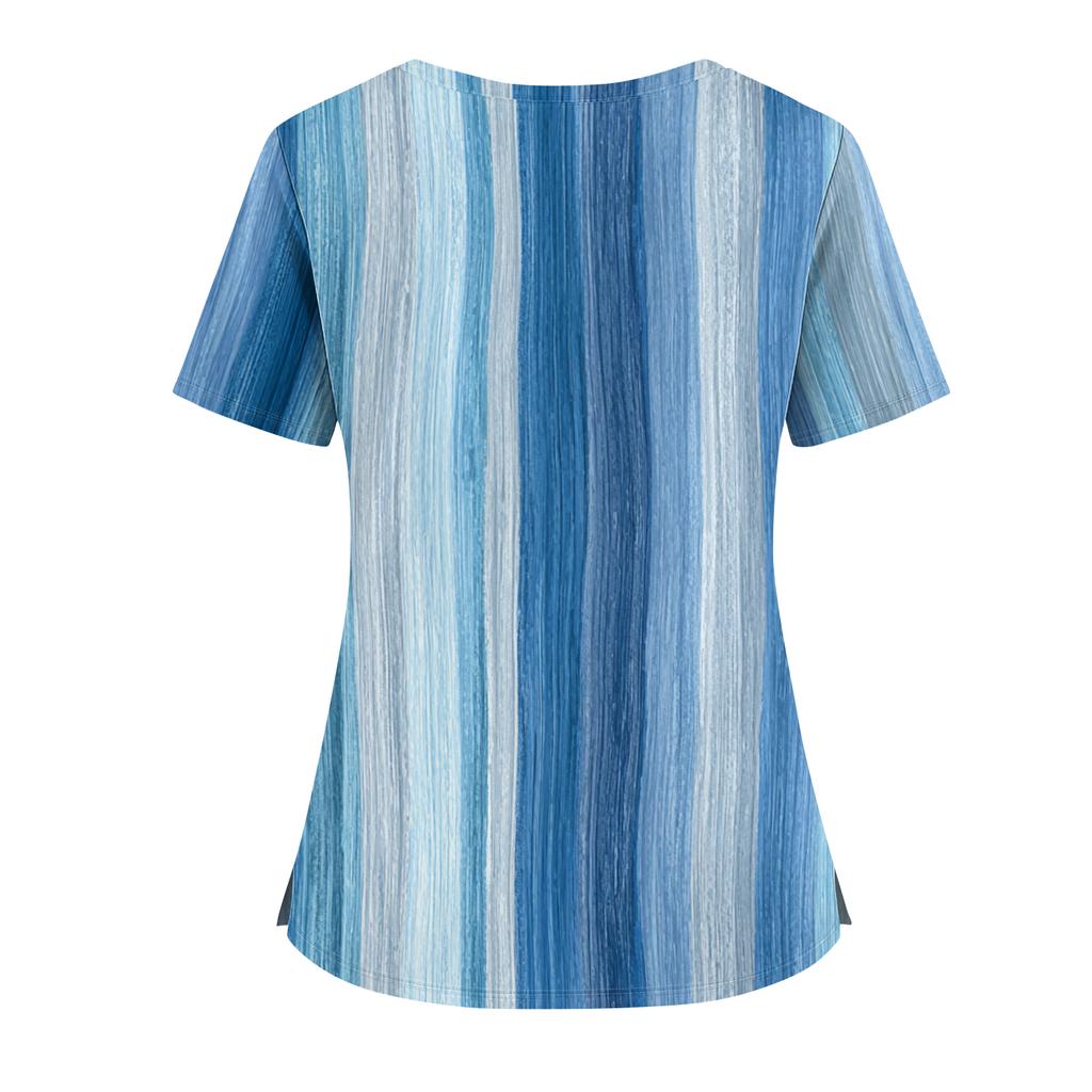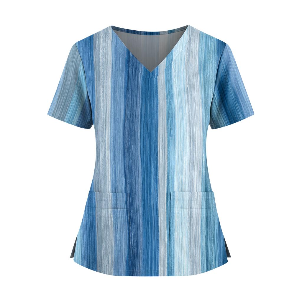 Женский топ с градиентным принтом, V-образным вырезом, двойным карманом, короткими рукавами, разрезом по низу, униформа для ухода