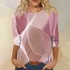 Женская модная повседневная футболка с круглым вырезом, рукавом три четверти и градиентным принтом