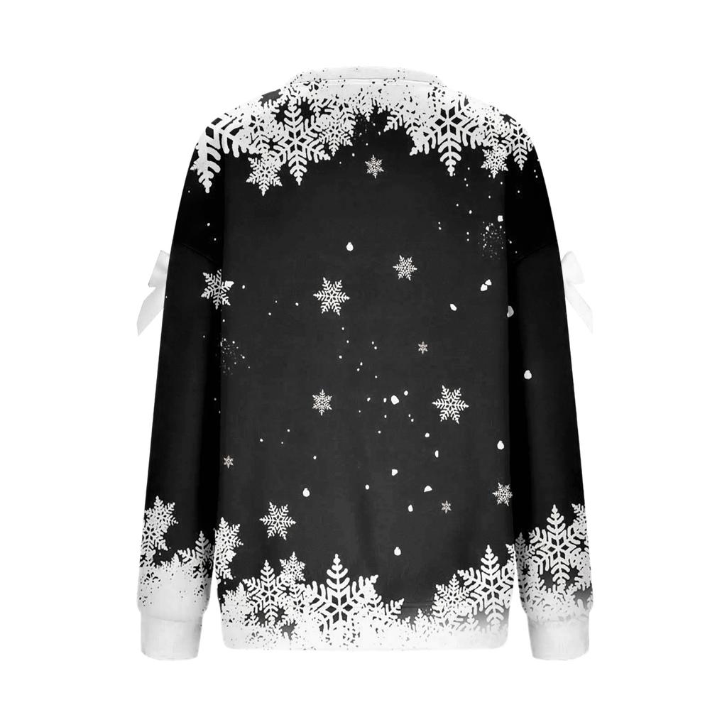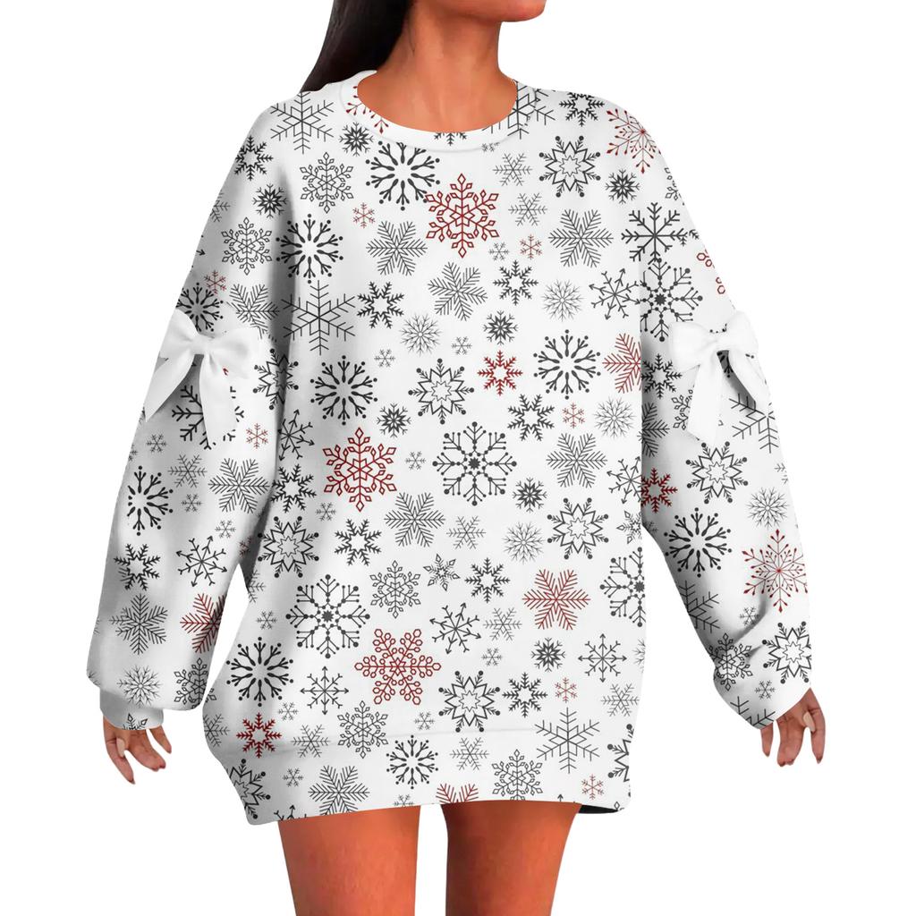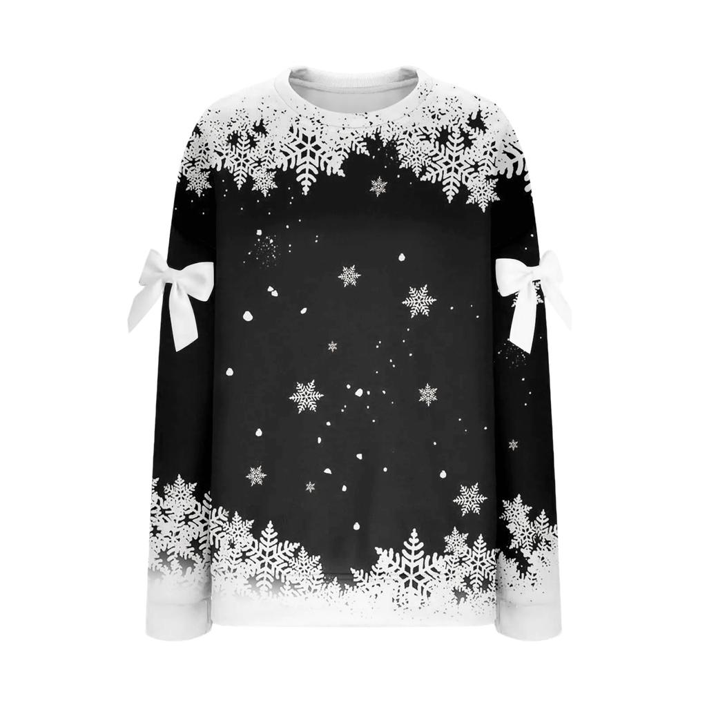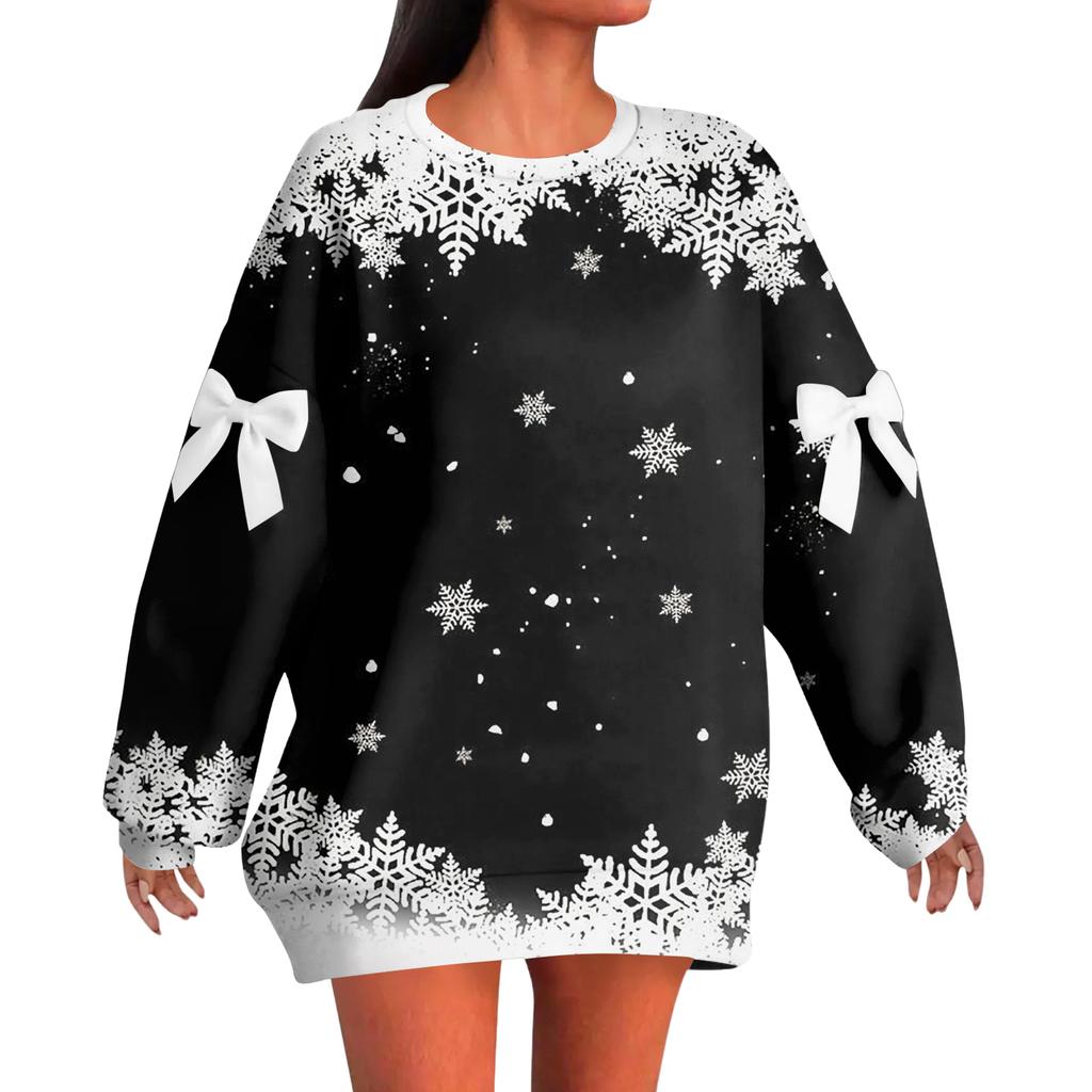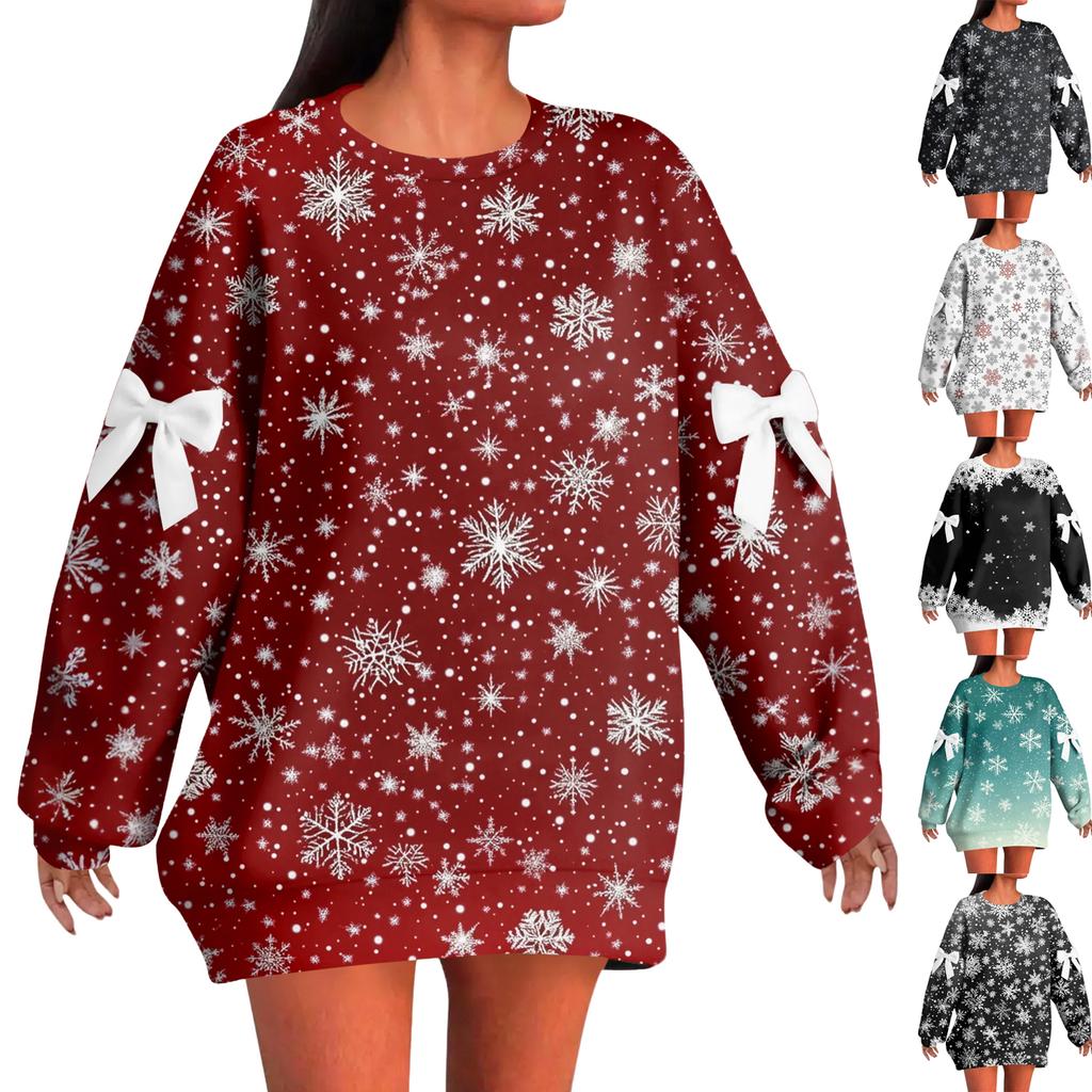 Женский рождественский пуловер с принтом и бантом, с круглым вырезом, длинными рукавами, свободного кроя