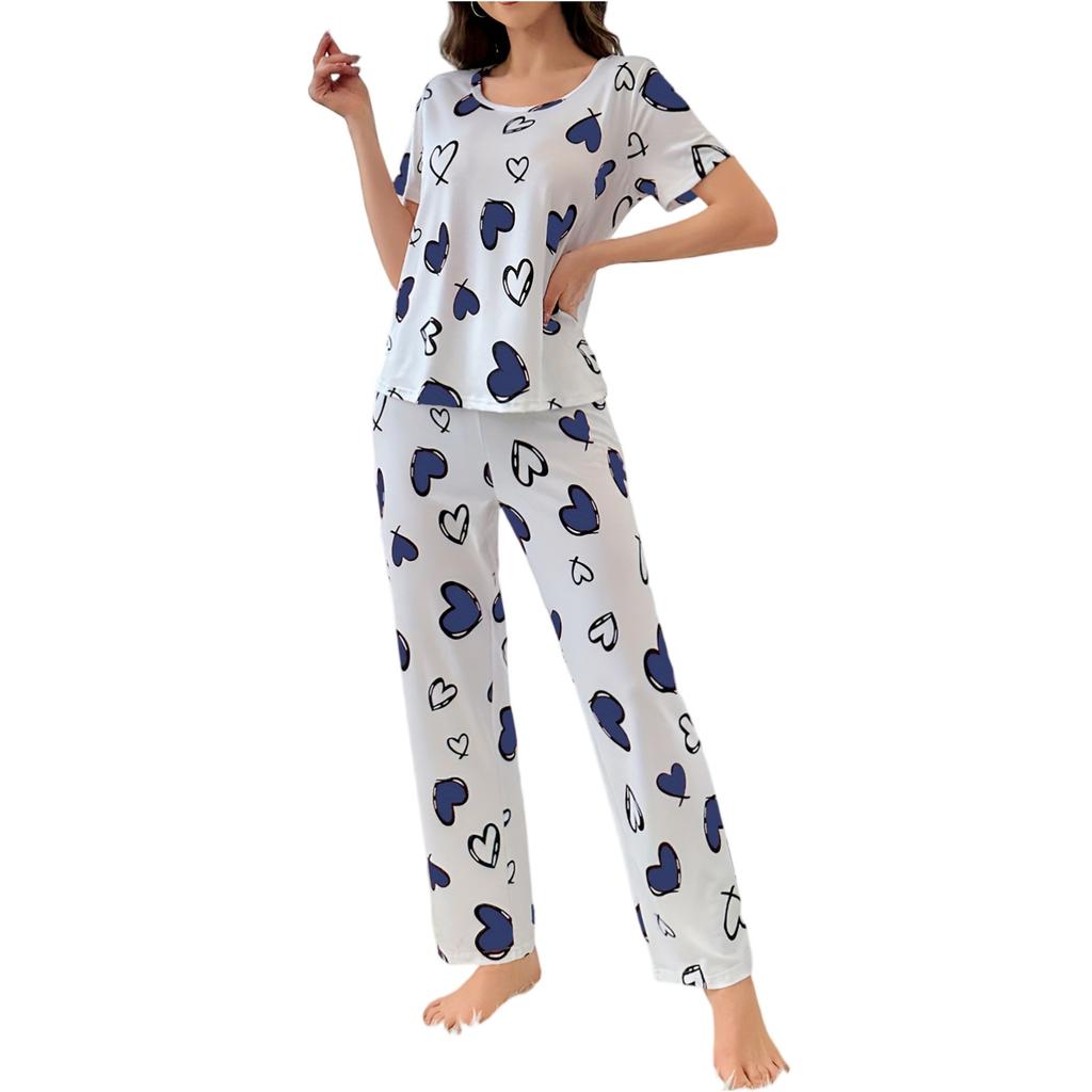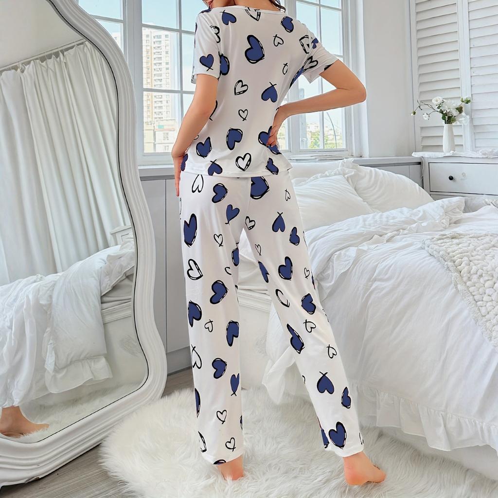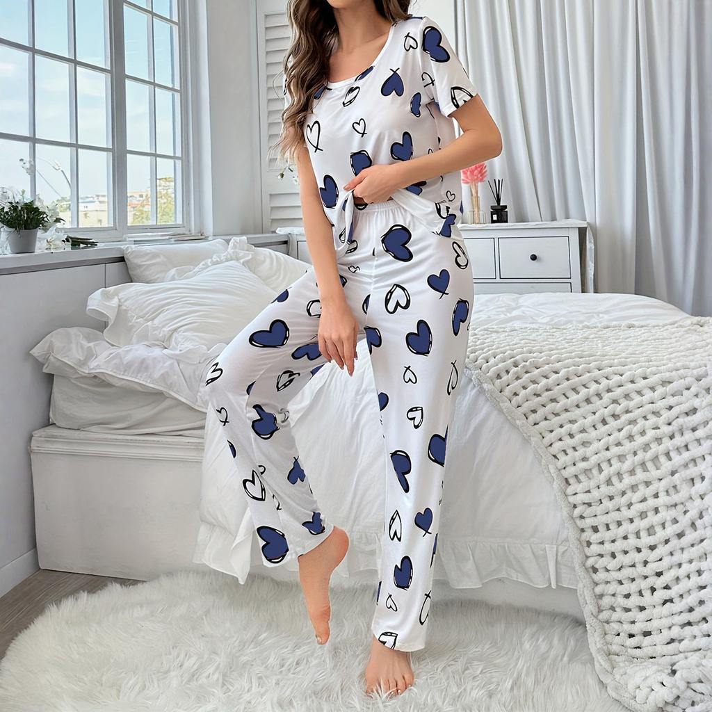 Женская одежда для сна, брюки с коротким рукавом, удобный повседневный домашний костюм с принтом сердечек, одежда для сна, подходящая для женщин для ношения на улице