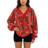 Женский свитшот с V-образным вырезом, плюшевый, однотонный, повседневный, модный, с длинным рукавом, с карманами, пуловер