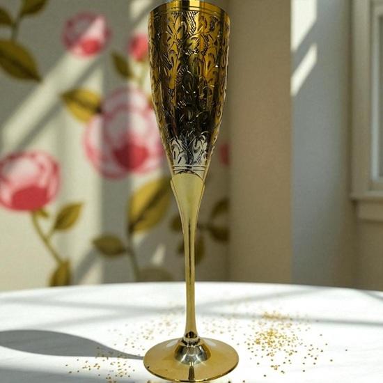 Привнесите вневременную элегантность в ваши торжества с этим латунным бокалом для вина 22,86 см, потрясающим золотым кубком с ручной гравировкой, созданным для того, чтобы подчеркнуть каждый глоток вашего любимого напитка.. Этот роскошный кубок, изготовленный из полированной латуни премиального качества, идеально подходит для подачи вина, шампанского, коктейлей, меда или пива, добавляя нотку винтажного очарования вашей сервировке стола.