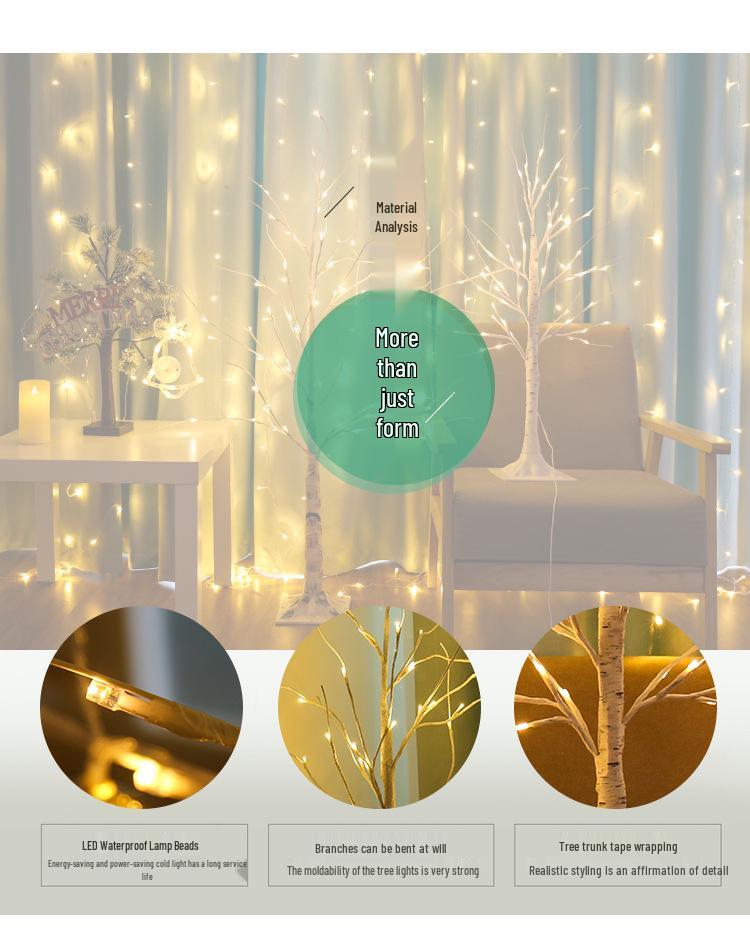 Светодиодная лампа 'Береза' с диммируемыми гирляндами - 8 режимов для украшения дома, гостиной