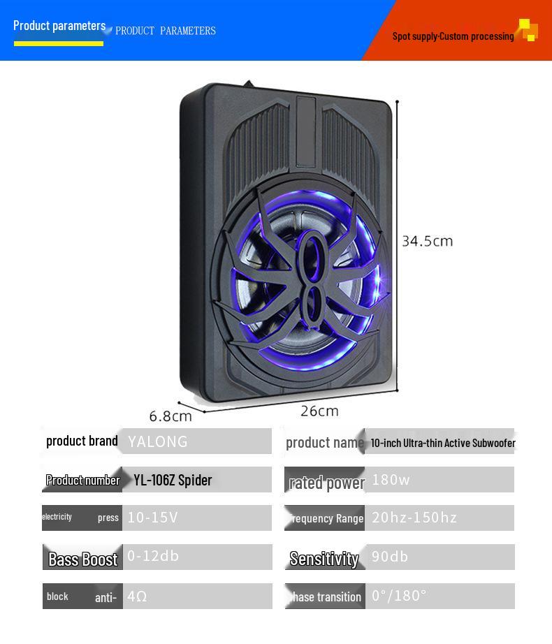 Паук 10-дюймовый Ультратонкий Активный Автомобильный Сабвуфер - Подходит Под Автосиденья