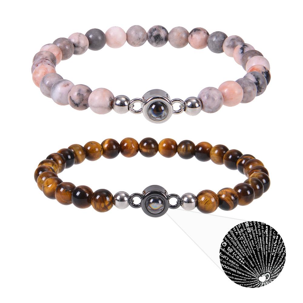 Браслет для пары с проекцией на 100 языках из натурального тигрового глаза 6 мм и зебрового камня — купить товар онлайн с бесплатной доставкой по всему миру!