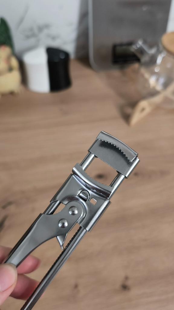 🥫Регулируемый металлический ключ (клещи), предназначенный для лёгкого открывания тугих крышек на банках и бутылках. * Назначение: Облегчает откручивание закупоренных или прилипших крышек различных диаметров. * Конструкция: Изготовлен из металла (нержавеющей стали), имеет регулируемый захват и длинные ручки-рычаги, что увеличивает силу воздействия. * Итог: Незаменимый и прочный кухонный инструмент для тех, кому сложно открыть плотно закрытые консервы. Спасибо продавцу ❤️ и Joom ❤️
