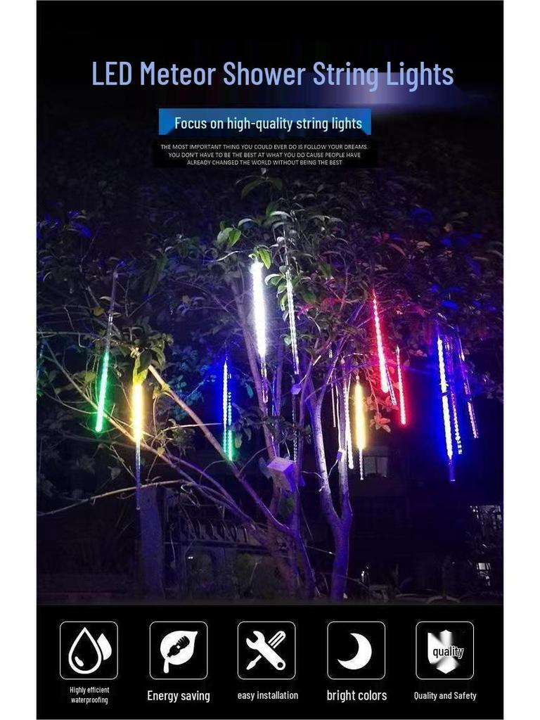 Светодиодные метеоритные дождевые водонепроницаемые сосульки - Наружное подвесное гирляндное украшение для деревьев