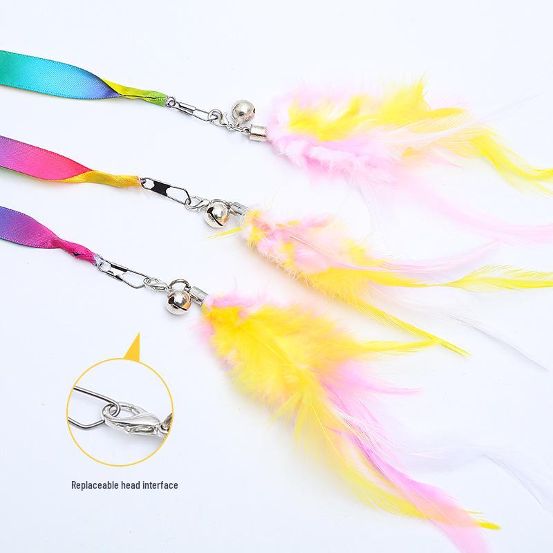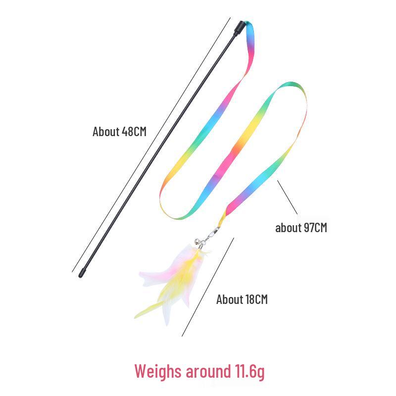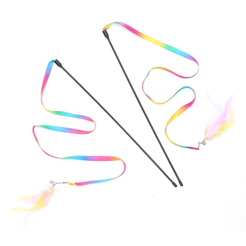 Радужная перьевая кошачья дразнилка-палочка со сменными тканевыми полосками