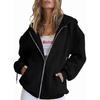 2023 Модная женская однотонная куртка-кардиган с капюшоном на молнии и карманами