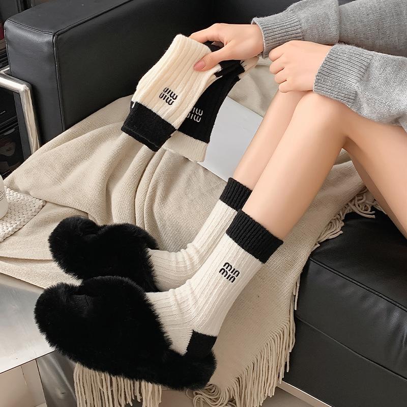 Женские шерстяные вышитые носки MIU до середины икры, модные теплые носки-гольфы для осени/зимы, подходят для послеродового периода. — купить товар онлайн с бесплатной доставкой по всему миру!