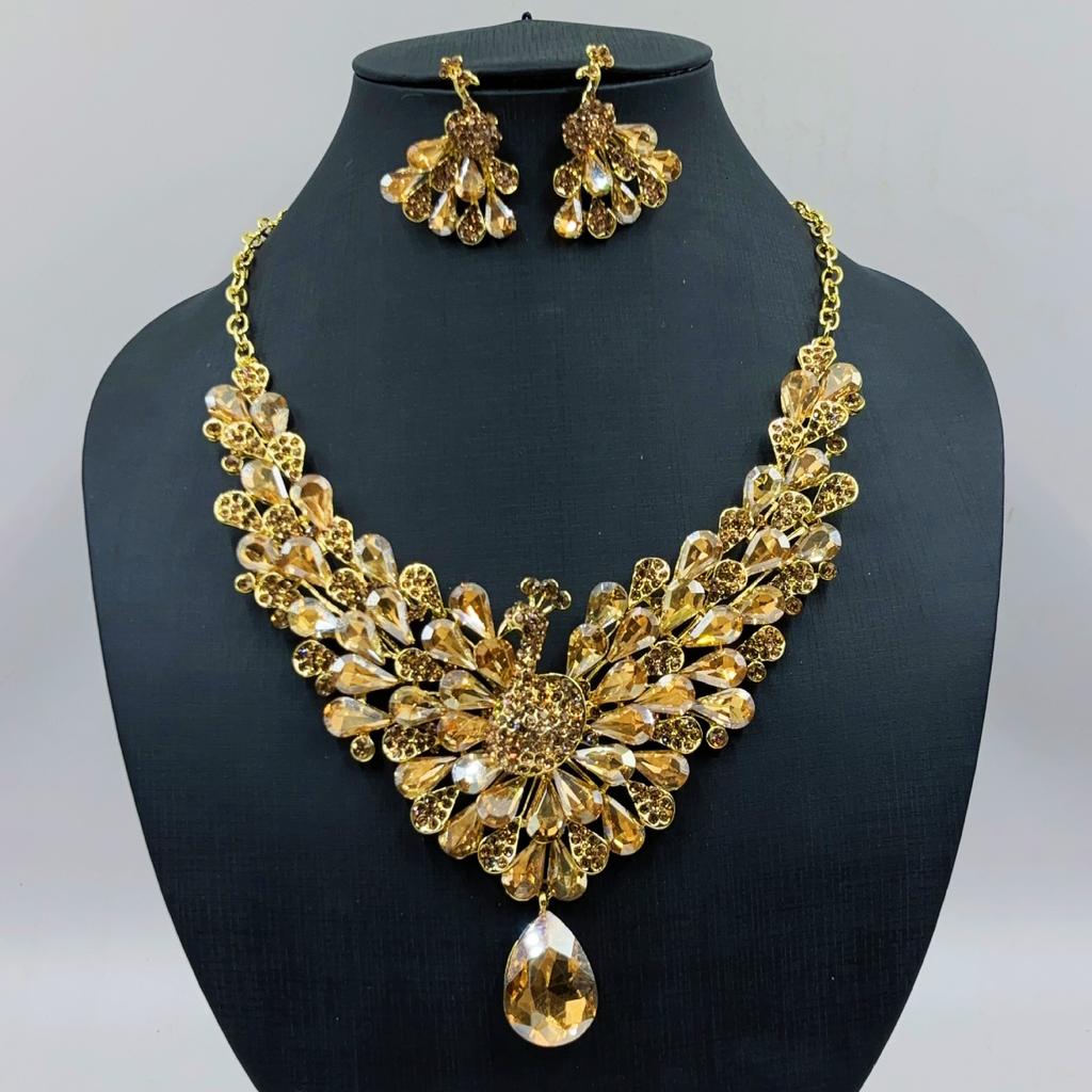 Набор свадебных украшений из хрусталя «Павлин» для женщин: серьги и колье, свадебная бижутерия, аксессуары для вечеринки