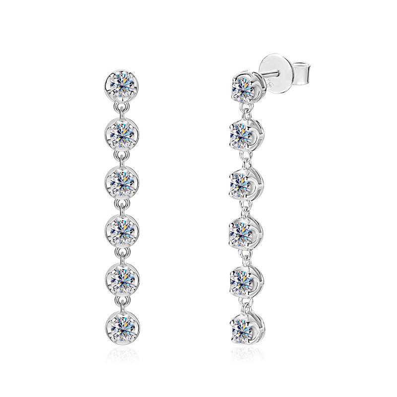 Серьги-кисточки из муассанита в европейском и американском стиле для женщин, круглые ювелирные изделия из стерлингового серебра S925