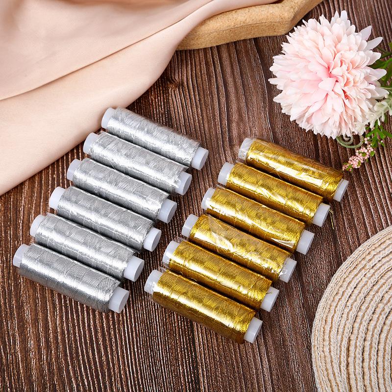 Набор швейных ниток с ручной вышивкой, металлик, золотой и серебряный