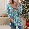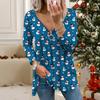 Женские осенние рождественские футболки с длинным рукавом с принтом, свободные, с V-образным вырезом, больших размеров, топы, удобная блузка