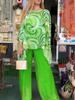 Представляем яркий и стильный летний костюм-двойку, созданный для тех, кто любит заявлять о себе.. Этот ансамбль выполнен из красочного шифона с живым узором в стиле колор-блок, который добавит игривости вашему гардеробу.. Топ с круглым вырезом и подходящие к нему брюки изготовлены из легкого и воздушного шифонового материала, обеспечивающего комфорт и воздухопроницаемость для занятий в теплую погоду.. Этот комплект в спортивном стиле легко сочетает в себе моду и функциональность, что делает его идеальным выбором для повседневных прогулок или непринужденных встреч.. Встречайте летний сезон с шиком и уверенностью в этом привлекательном наряде.