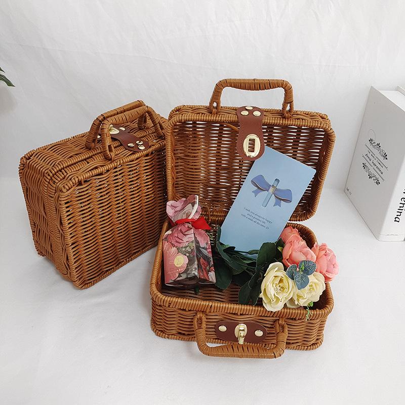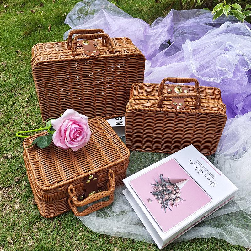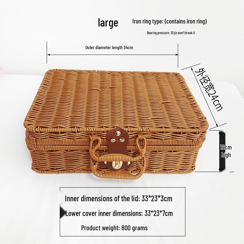 Upgraded Iron Frame Rattan Woven Suitcase - Reinforced Cosmetic Storage Box
