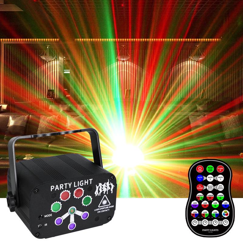 Мини-лазерный прожектор UV6 с 8 отверстиями, изменяющий цвет, для создания атмосферы и оформления сцены в караоке. Стробоскопический луч.