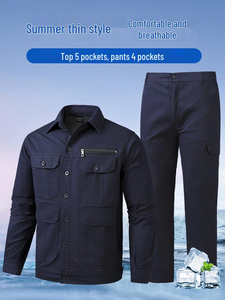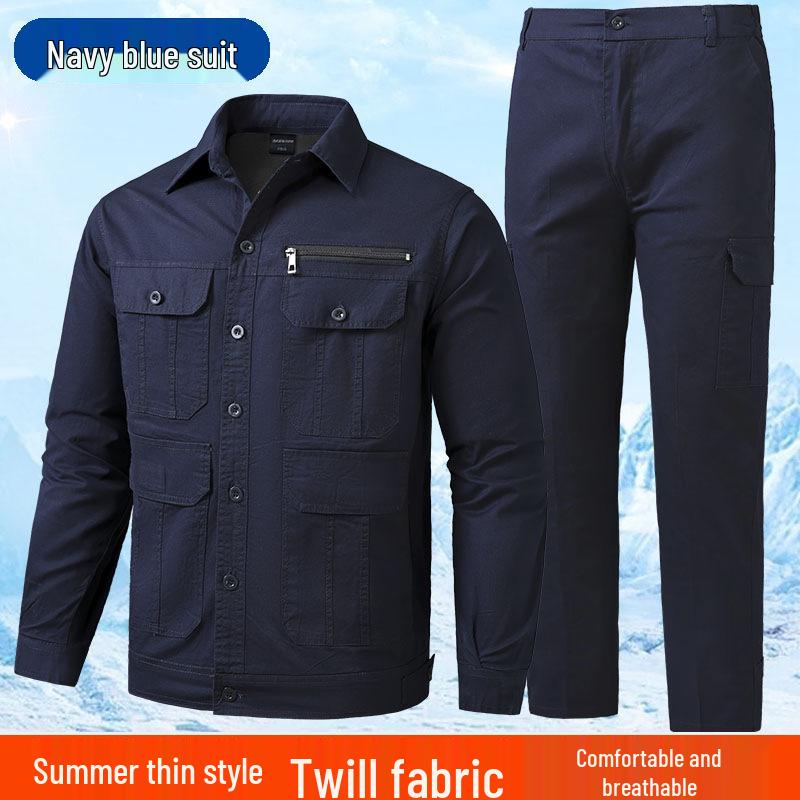 Мужской летний твиловый хлопковый рабочий костюм - Легкий, свободного кроя с многокарманным дизайном для сварщиков