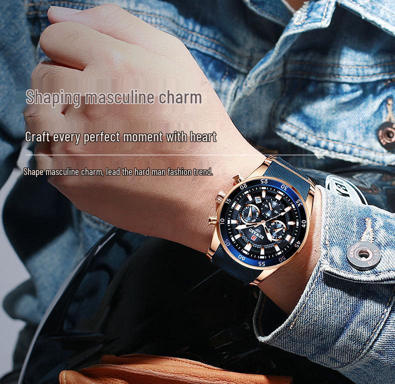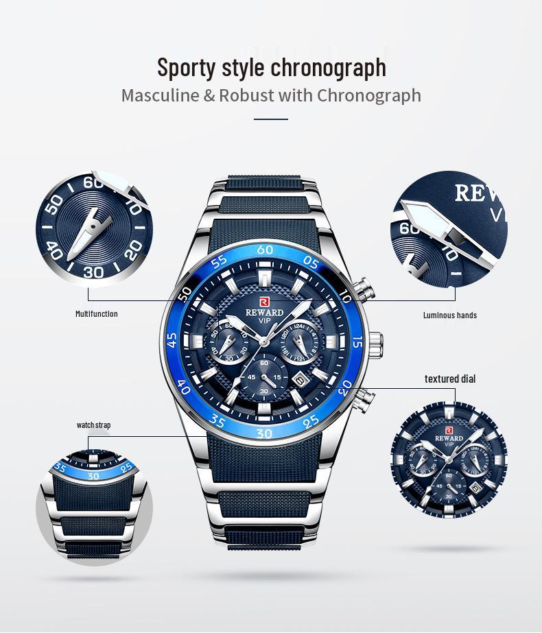 Многофункциональные светящиеся водонепроницаемые мужские спортивные часы Reward с календарем и браслетом из нержавеющей стали (Модель RD81011M)