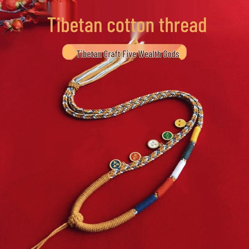 Пятирядное тибетское хлопковое ожерелье с подвеской-амулетом Танка и Будда