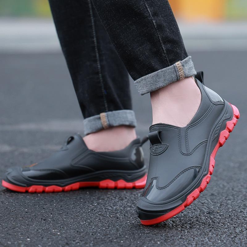 Мужские модные модели низких резиновых дождевых ботинок, резиновые ботинки с низким верхом, рыболовные нескользящие и водонепроницаемые строительные резиновые сапоги, мужская обувь для воды