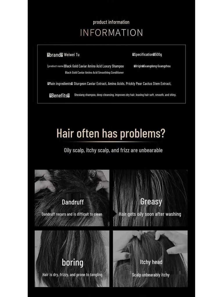 Набор шампуня и кондиционера Black Gold Caviar с аминокислотами: Стойкий аромат, питательный и контролирующий жирность