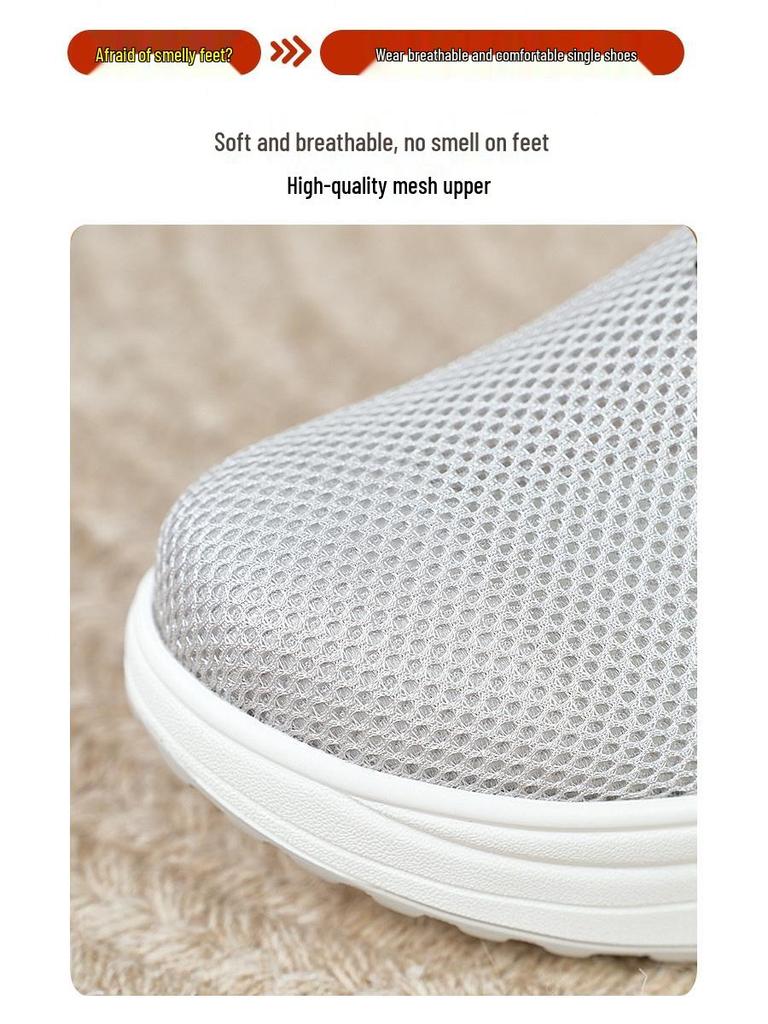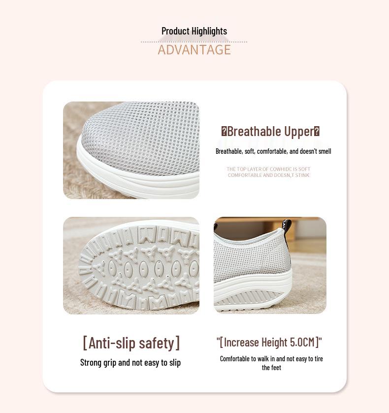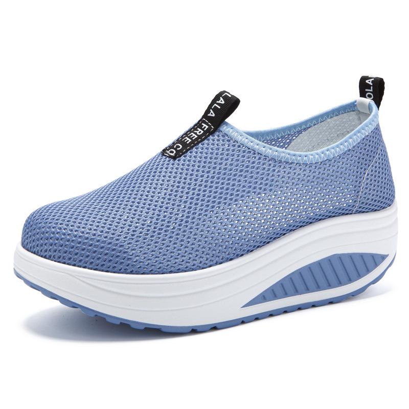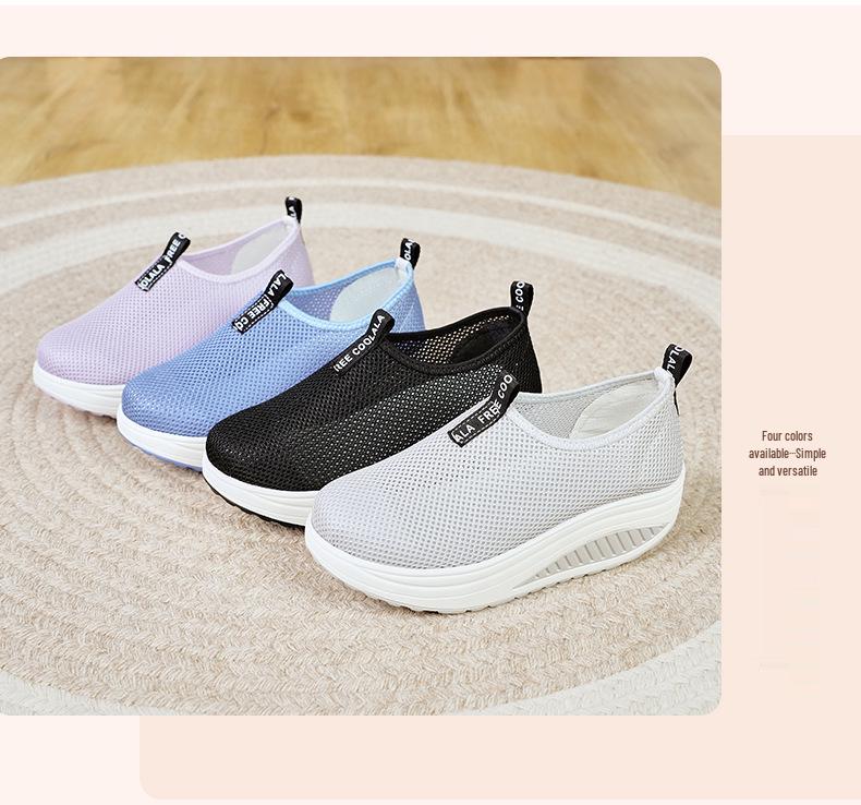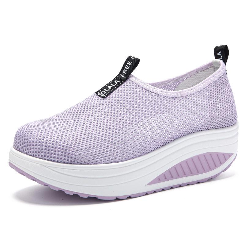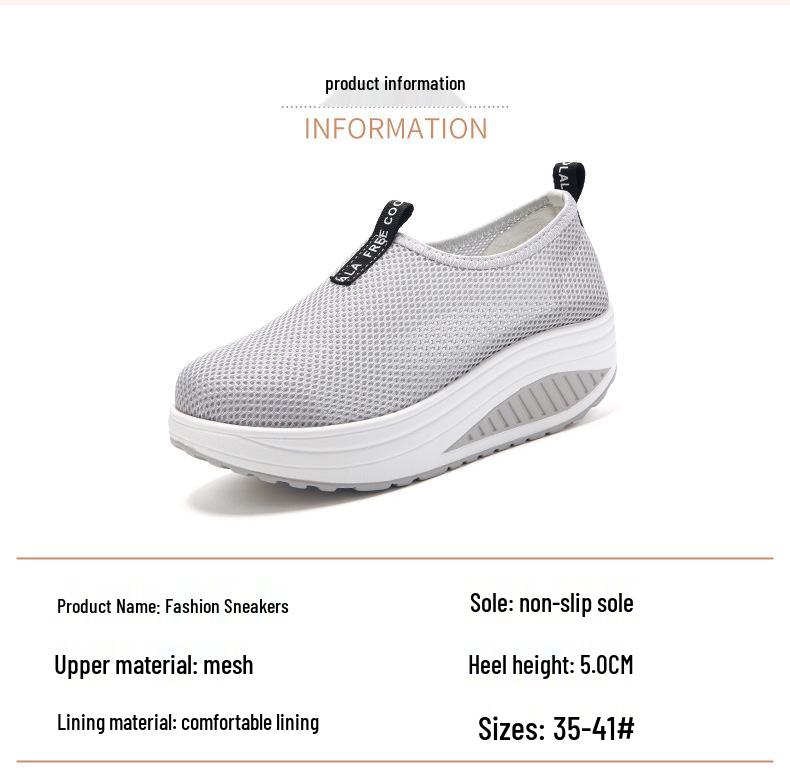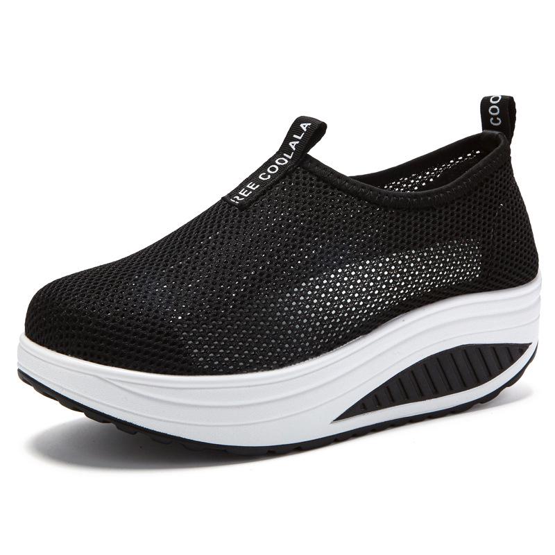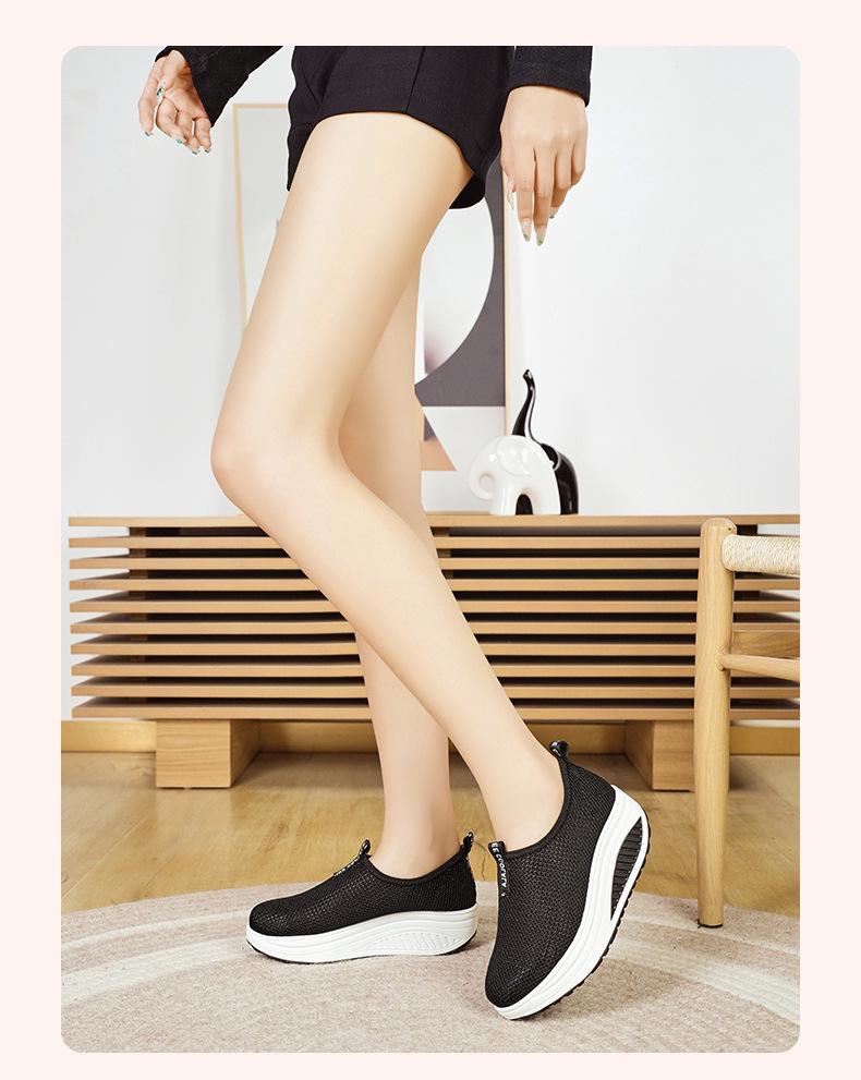 Женские кроссовки слипоны на сетчатой танкетке - Дышащие, на толстой подошве, повседневная обувь