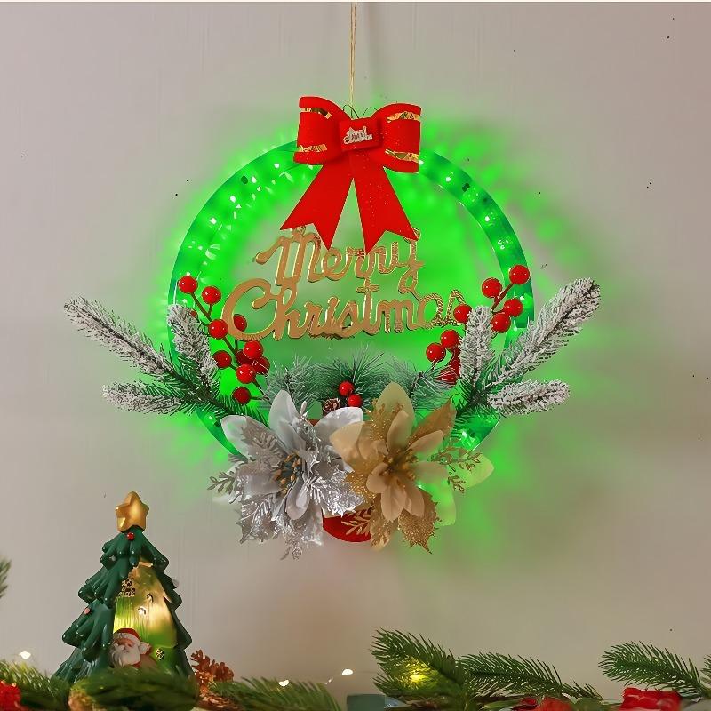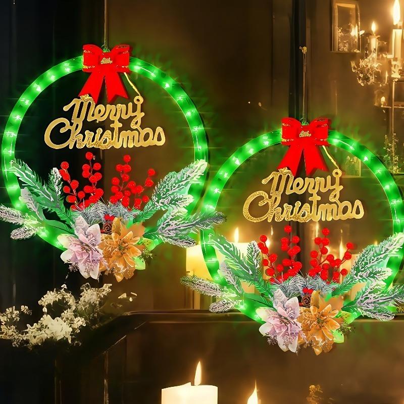 2025 Светодиодный Рождественский Венок Подвесное Украшение с 8 Световыми Мигающими Функциями и Таймером Светодиодная Гирлянда Домашнее Оконное Украшение Лампа