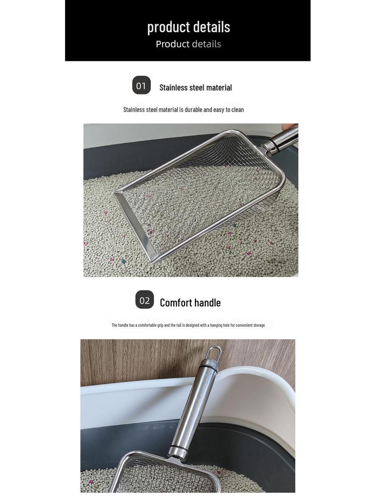 Совок для кошачьего туалета из нержавеющей стали с маленькими отверстиями - Инструмент для уборки за питомцами для бентонитового и орехового песка.