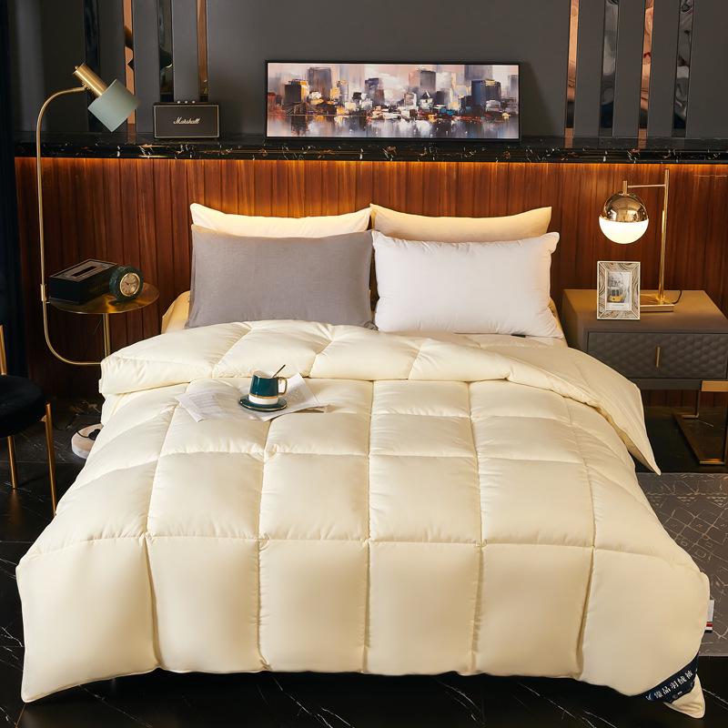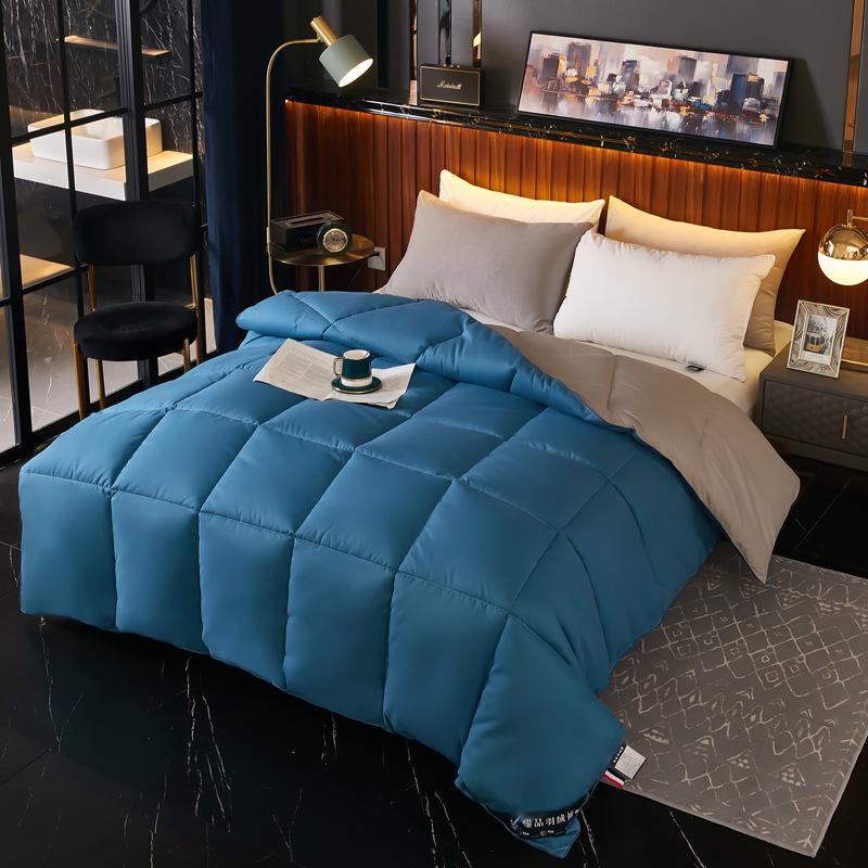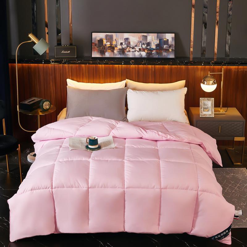 Уютное осенне-зимнее толстое пуховое одеяло - односпальное и двуспальное, однотонное, с наполнителем из перьев и шелка.