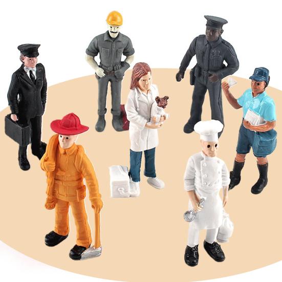 7 шт./набор Расписанная вручную миниатюрная пейзажная фигурка Высокореалистичная фигурка рабочего места Пожарный Полицейский Пейзажная фигурка для украшения