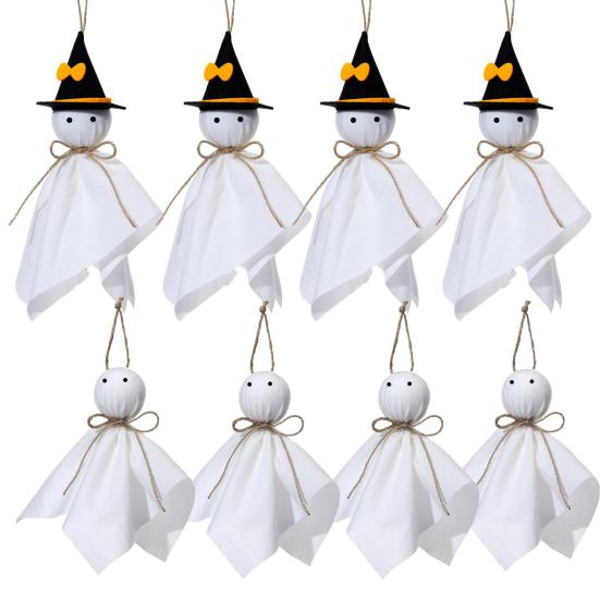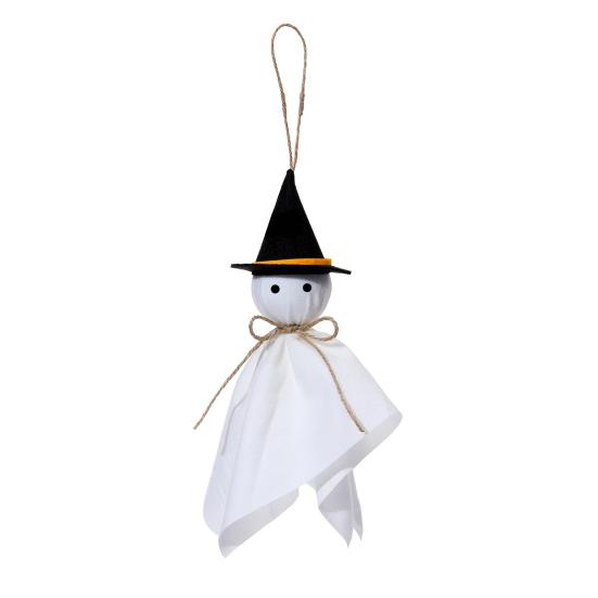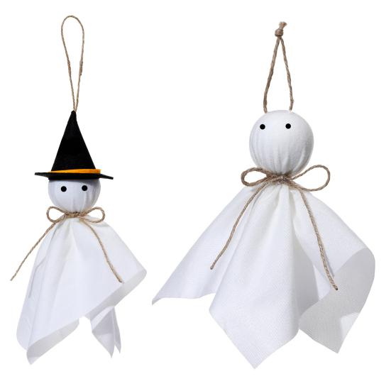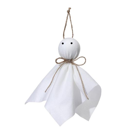 Украсьте свой Хэллоуинский декор этими очаровательными подвесными украшениями в виде привидений. Эти милые привидения, сделанные из белой ткани с черными глазами и пеньковой веревкой, добавят игривое прикосновение к вашим праздничным композициям.. Развесьте их где угодно, чтобы создать жуткую атмосферу, которая будет одновременно веселой и праздничной.