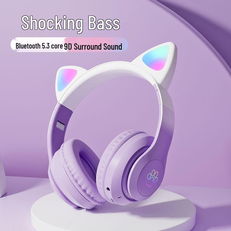 Градиентные RGB беспроводные накладные Bluetooth-наушники с силиконовым проводным вариантом для игр и звонков.