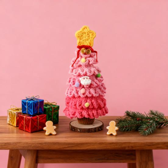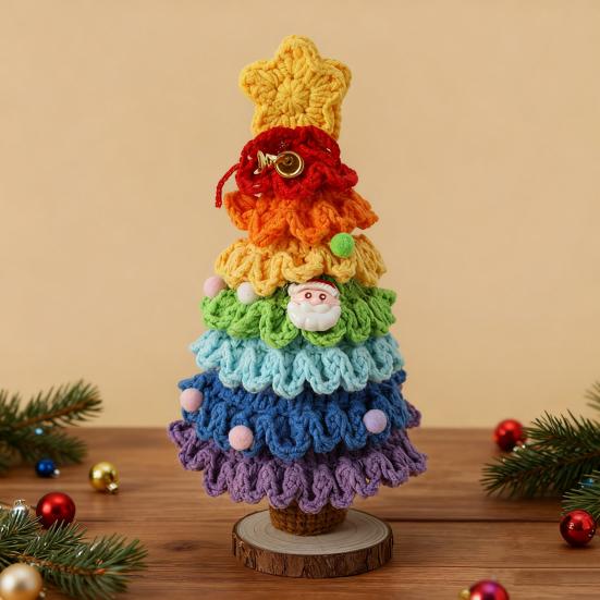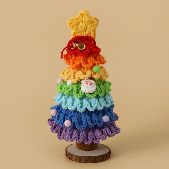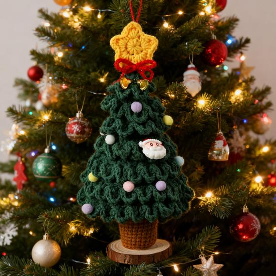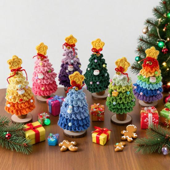 Маленькая вязаная крючком рождественская елка ручной работы, многослойная вязаная рождественская елка с основанием под дерево для зимнего настольного декора дома, комнаты, для вечеринки