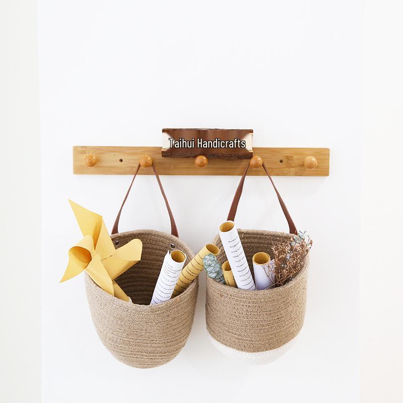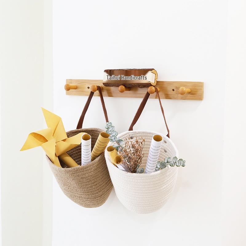 Подвесная корзина на дверь общежития: Тканое хранение из хлопковой веревки, для спальни или прихожей, для косметики и многого другого.