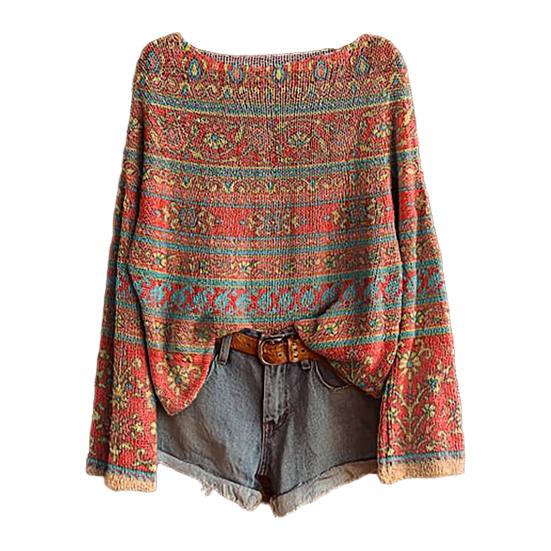 Женский осенний свитер с круглым вырезом и длинным рукавом, винтажный пуловер оверсайз, этнические графические вязаные топы для повседневной носки — купить товар онлайн с бесплатной доставкой по всему миру!