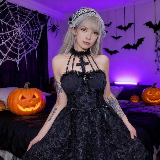 Женское готическое кружевное платье без рукавов, винтажное платье-корсет с халтером и расклешенной юбкой, коктейльное платье в викторианском стиле, черное платье в стиле лолита-панк