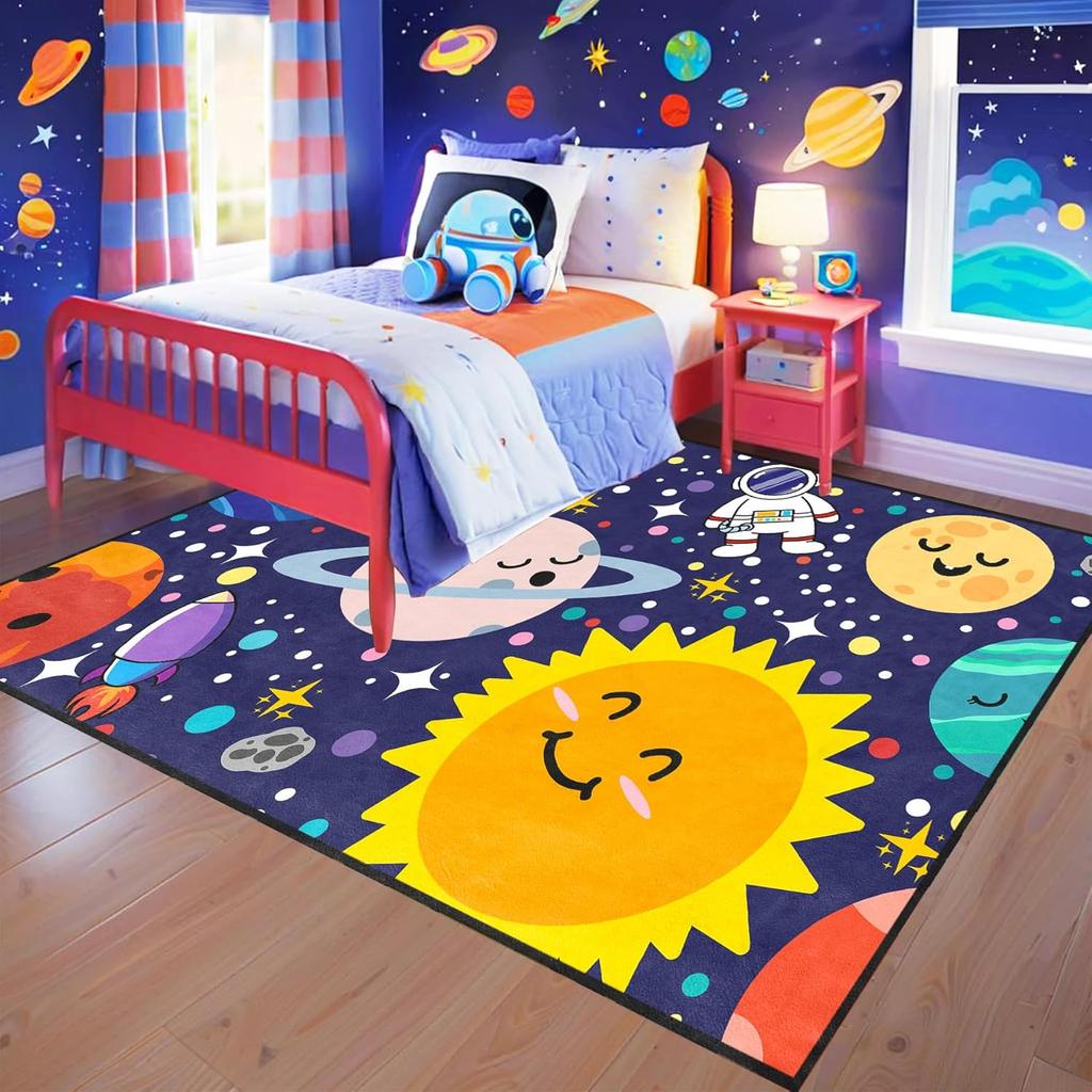 Детский ковер «Солнечная система» - Ковер для игровой комнаты на тему галактики, Нескользящий коврик для пола с принтом планет для спальни мальчика/девочки, Декор для класса