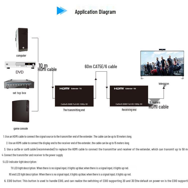 60 м удлинитель HDMI — RJ45 - Высокое разрешение, один сетевой кабель